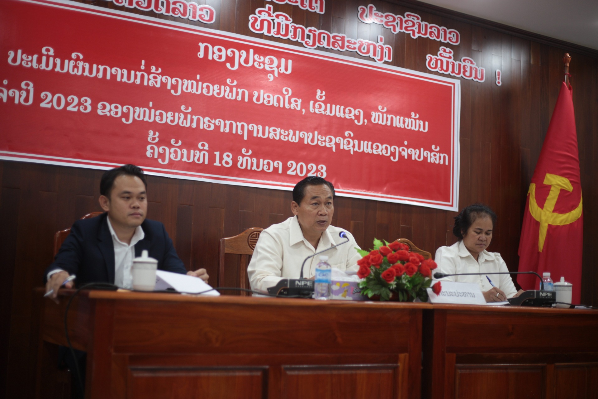 ກອງປະຊຸມປະເມີນຜົນການກໍ່ສ້າງໜ່ວຍພັກປອດໃສ, ເຂັ້ມແຂງ, ໜັກແໜ້ນ ປະຈໍາປີ 2023 ຂອງໜ່ວຍພັກຮາກຖານສະພາປະຊາຊົນແຂວງຈໍາປາສັກ