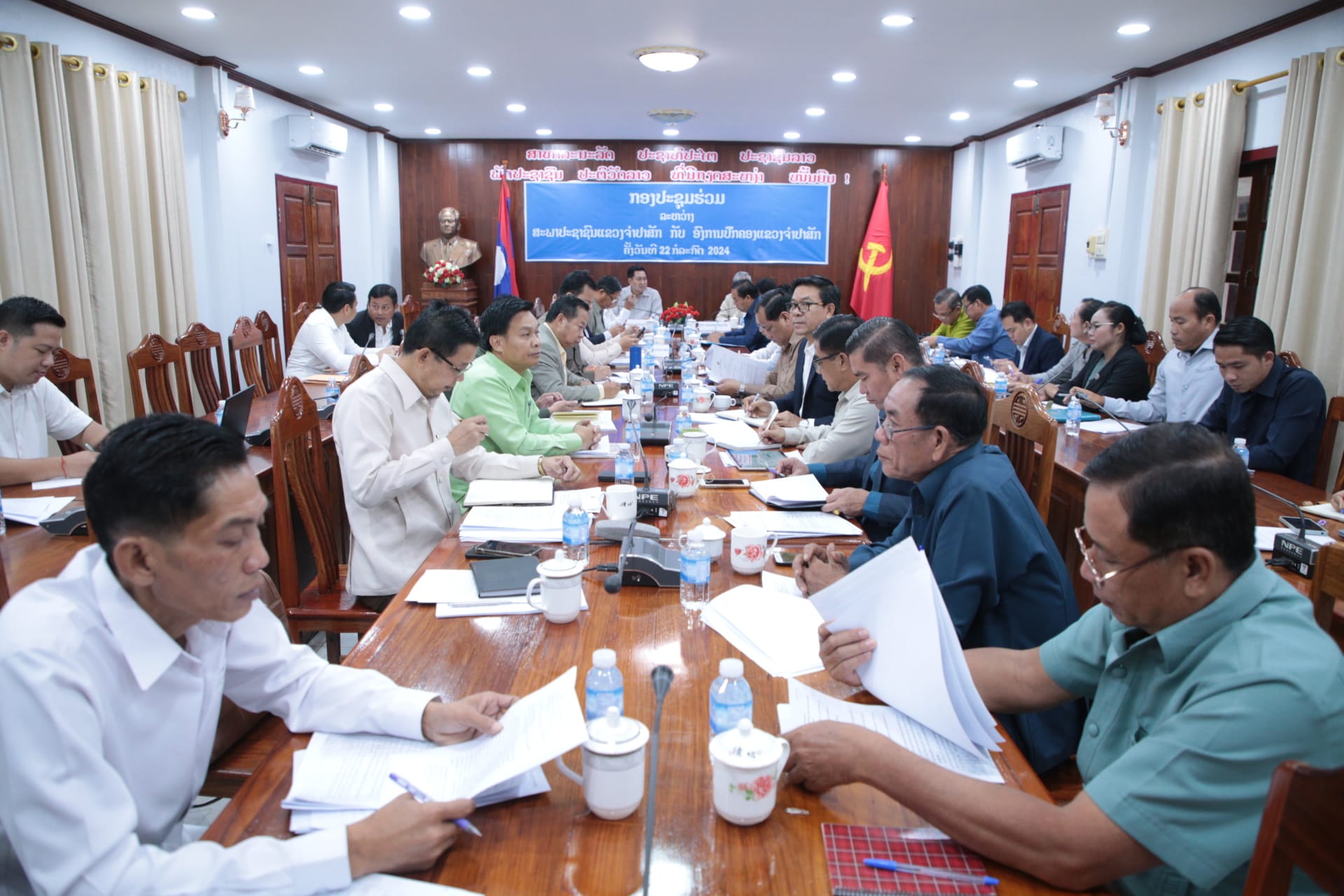 ກອງປະຊຸມຮ່ວມ ລະຫວ່າງ ສະພາປະຊາຊົນແຂວງຈໍາປາສັກ ກັບ ອົງການປົກຄອງແຂວງຈໍາປາສັກ ກອງປະຊຸມຮ່ວມ ລະຫວ່າງ ສະພາປະຊາຊົນແຂວງ ແລະ ອົງການປົກຄອງ ແຂວງຈໍາປາສັກ