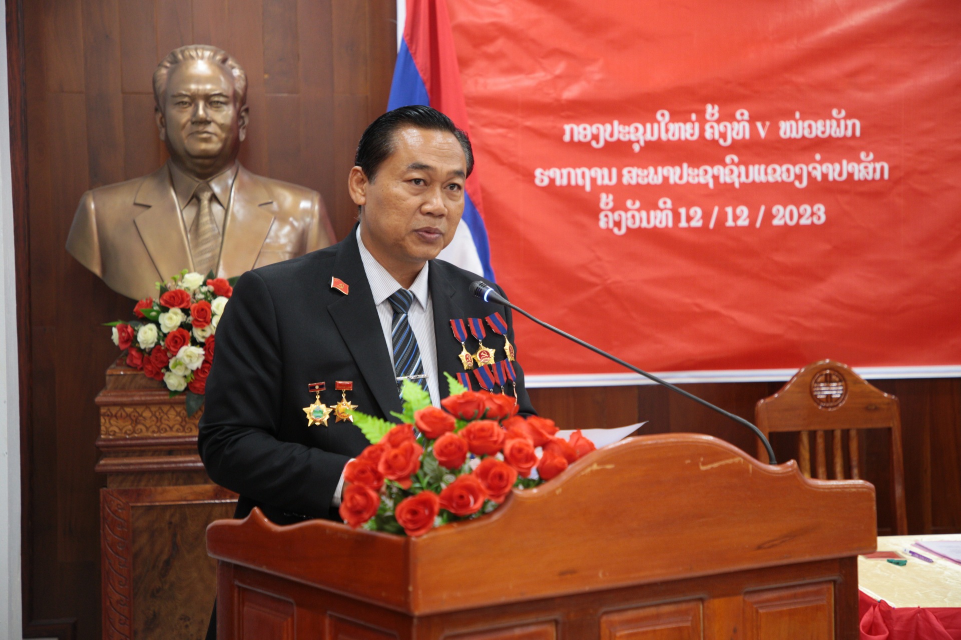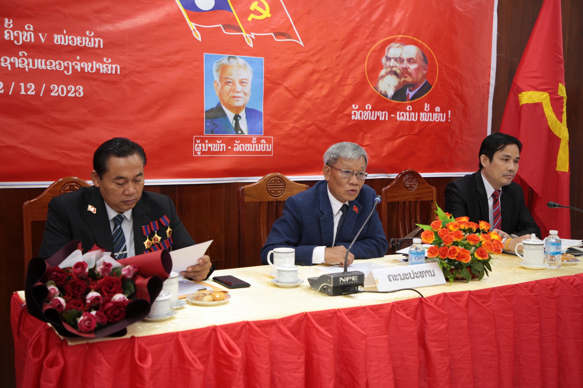 ໃຈກອງປະຊຸມໃຫຍ່ ຄັ້ງທີ V ຂອງໜ່ວຍພັກຮາກຖານສະພາປະຊາຊົນແຂວງຈໍາປາສັກ ໄດ້ດໍາເນີນ ແລະ ອັດລົງດ້ວຍຜົນສໍາເລັດຢ່າງຈົບງາມ ໃນວັນທີ 12 ທັນວາ 2023 ທີ່ຜ່ານມາ ຢູ່ທີ່ຫ້ອງປະຊຸມຂອງສະພາປະຊາຊົນແຂວງຈໍາປາສັກ ພາຍໃຕ້ການເປັນປະທານຂອງ ສະຫາຍ ສາຍທອງ ໄຊຍະວົງ ຮອງເລຂາຄະນະບໍລິຫານງານພັກແຂວງ, ປະທານສະພາປະຊາຊົນແຂວງຈໍາປາສັກ, ເຂົ້າເປັນຄະນະປະທານມີ ສະຫາຍ ສົມສີ ມະນີນິນ ກໍາມະການພັກແຂວງ, ເລຂາຄະນະໜ່ວຍພັກຮາກຖານສະພາປະຊາຊົນແຂວງຈໍາປາສັກ, ຮອງປະທານສະພາປະຊາຊົນແຂວງ ແລະ ສະຫາຍ ສາທິດ ປັດສາພັນ ຮອງຫົວໜ້າຄະນະຈັດຕັ້ງແຂວງຈໍາປາສັກ ມີບັນດາສະຫາຍຄະນະໜ່ວຍພັກສະພາປະຊາຊົນແຂວງຈໍາປາສັກ ຊຸດທີ IV, ສະມາຊິກພັກສົມບູນ, ສະມາຊິກພັກສໍາຮອງ ພາຍໃນໜ່ວຍພັກຮາກຖານສະພາປະຊາຊົນແຂວງຈໍາປາສັກ ແລະ ບັນດາສະຫາຍແຂກຖືກເຊີນຕາງໜ້າຈາກຄະນະພັກບັນດາພະແນກການ-ກົມກອງອ້ອມຂ້າງແຂວງ ເຂົ້າຮ່ວມ.