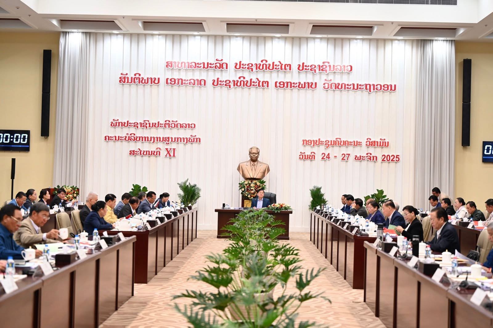 ໂອກາດນີ້, ສະຫາຍ ທອງລຸນ ສີສຸລິດ ໄດ້ມີຄຳເຫັນໂດຍເນັ້ນໜັກວ່າ: ບັນດາເນື້ອໃນດັ່ງກ່າວນັ້ນ ລ້ວນແຕ່ເປັນບັນຫາສໍາຄັນທີ່ມີລັກສະນະຍຸດທະສາດຂອງພັກເຮົາ ທີ່ຈະນຳເຂົ້າຜ່ານ ແລະ ຮັບຮອງໃນກອງປະຊຸມໃຫຍ່ ຄັ້ງທີ XII ຂອງພັກ ໃນຕົ້ນປີ 2026 ເຊິ່ງຈະເປັນບ່ອນອີງ ແລະ ເປັນເຂັມຊີ້ທິດເຍືອງທາງໃຫ້ແກ່ການນໍາພາ-ຊີ້ນຳວຽກງານຂອງພັກ-ລັດໃນຊຸມປີຕໍ່ໜ້າ; ຜ່ານມາ ພວກເຮົາກໍໄດ້ຄົ້ນຄວ້າ ແລະ ປະກອບຄຳເຫັນຫຼາຍຄັ້ງແລ້ວ ຈຶ່ງສະເໜີໃຫ້ບັນດາສະຫາຍຄະນະບໍລິຫານງານສູນກາງພັກ ຕ້ອງໄດ້ສຸມໃສ່ຄົ້ນຄວ້າ, ໃຫ້ຄໍາເຫັນ, ໃຫ້ທິດຕໍ່ແຕ່ລະວຽກ ໃຫ້ເລິກເຊິ່ງຕື່ມ, ພາວະວິໄສ ແລະ ເຈາະຈົງໃສ່ບັນຫາທີ່ຕັ້ງຂຶ້ນ ແລະ ອອກຄໍາເຫັນໃຫ້ເລິກເຊິ່ງ ແລະ ຖືກຈຸດ ເພື່ອງ່າຍໃຫ້ແກ່ການສະຫຼຸບສັງລວມ, ງ່າຍໃຫ້ແກ່ການປັບປຸງເອກະສານ ແລະ ຖືກກັບຈຸດທີ່ຢາກໄດ້, ຢາກແກ້ໄຂແທ້ໆ ເພື່ອເຮັດໃຫ້ກອງປະຊຸມຄັ້ງນີ້ ໄດ້ຮັບຜົນສຳເລັດຕາມແຜນທີ່ວາງໄວ້.