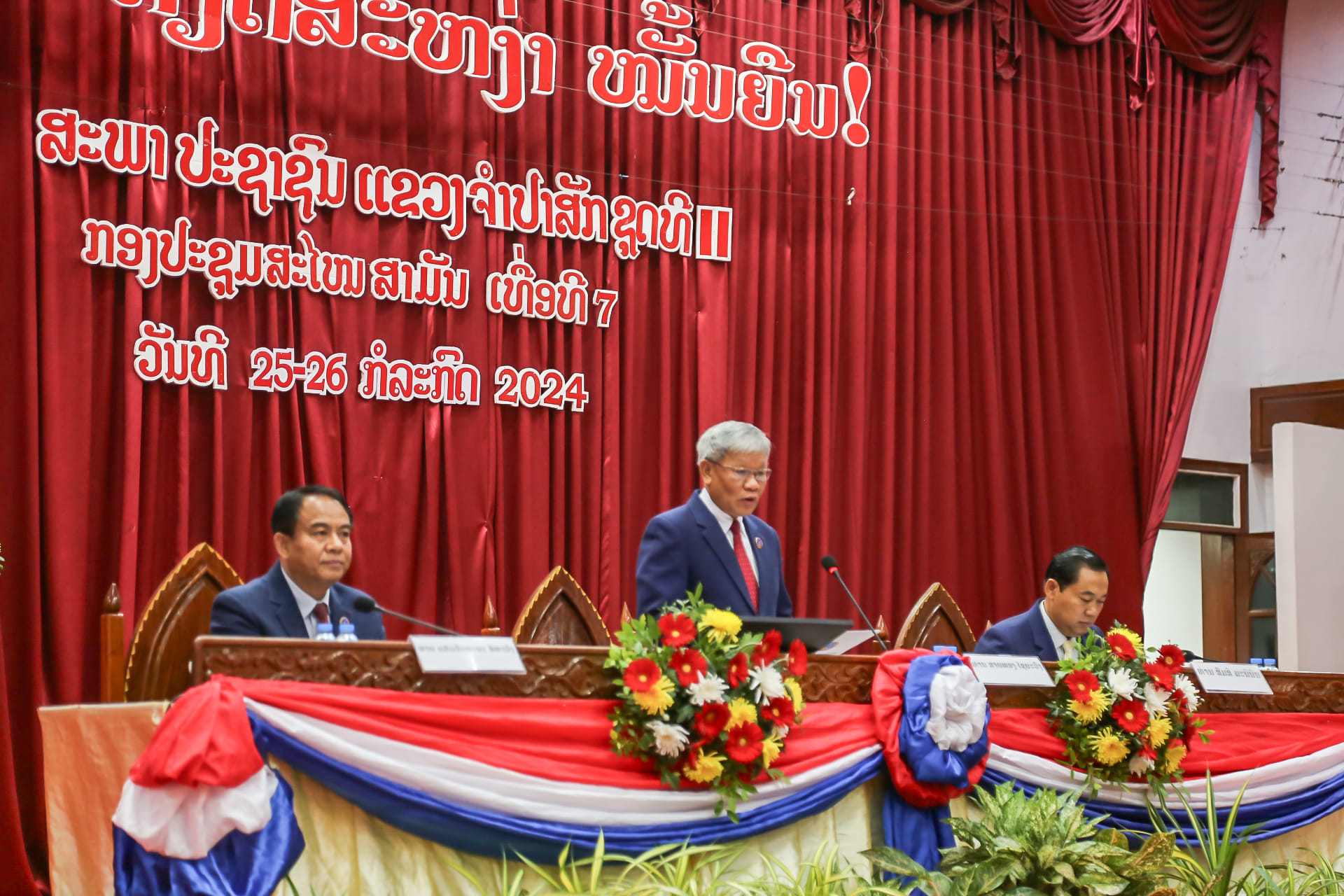 ກອງປະຊຸມສະໄໝສາມັນເທື່ອທີ 7 ສະພາປະຊາຊົນແຂວງຈໍາປາສັກ ຊຸດທີ II ໄດ້ດໍາເນີນ ແລະ ອັດລົງດ້ວຍຜົນສໍາເລັດຢ່າງຈົບງາມ ໃນລະຫວ່າງວັນທີ 25-26 ກໍລະກົດ 2024ທີ່ຜ່ານມາ ຢູ່ທີ່ຫໍປະຊຸມໃຫຍ່ຂອງແຂວງຈໍາປາສັກ (ສະໂມສອນ ຫຼັກ 4 ) ໂດຍພາຍໃຕ້ການເປັນປະທານຂອງ ທ່ານ ສາຍທອງ ໄຊຍະວົງ ຮອງເລຂາພັກແຂວງ ປະທານສະພາປະຊາຊົນແຂວງຈໍາປາສັກ ແລະການໃຫ້ກຽດເຂົ້າຮ່ວມຂອງ ທ່ານ ສົມມາດ ພົລເສນາ ກຳມະການສູນກາງພັກ ຮອງປະທານຄະນະປະຈໍາສະພາແຫ່ງຊາດ, ທ່ານ ອາລຸນໄຊ ສູນນະລາດ ກຳມະການສູນກາງພັກ ເລຂາພັກແຂວງ ເຈົ້າແຂວງຈຳປາສັກ ມີບັນດາທ່ານການນໍາພັກ – ລັດຂອງແຂວງ, ອະດີດການນໍາຂັ້ນສູງຂອງແຂວງ, ແນວລາວສ້າງຊາດ, ອົງການຈັດຕັ້ງມະຫາຊົນ, ພ້ອມດ້ວຍບັນດາທ່ານສະມາຊິກ ສະພາແຫ່ງຊາດ ປະຈຳເຂດເລືອກຕັ້ງ 15, ສະມາຊິກສະພາປະຊາຊົນແຂວງປະຈໍາເຂດເລືອກຕັ້ງ 9 ເມືອງ, 1 ນະຄອນ ຂອງແຂວງຈໍາປາສັກ ບັນດາທ່ານການນໍາພະແນກການ, ອົງການລັດທຽບເທົ່າຂັ້ນແຂວງ ເຈົ້າເມືອງ, ເຈົ້ານະຄອນ, ຜູ້ຕາງໜ້າຈາກພາກສ່ວນຕ່າງໆ ແລະ ນັກຮຽນ - ນັກສຶກສາ ເຂົ້າຮ່ວມ.