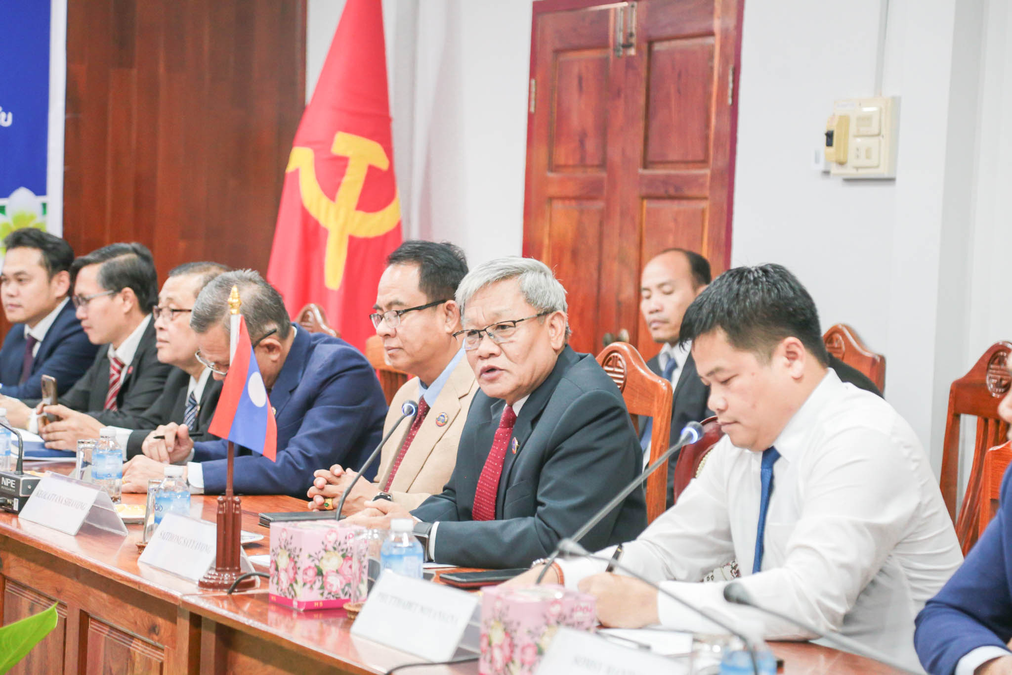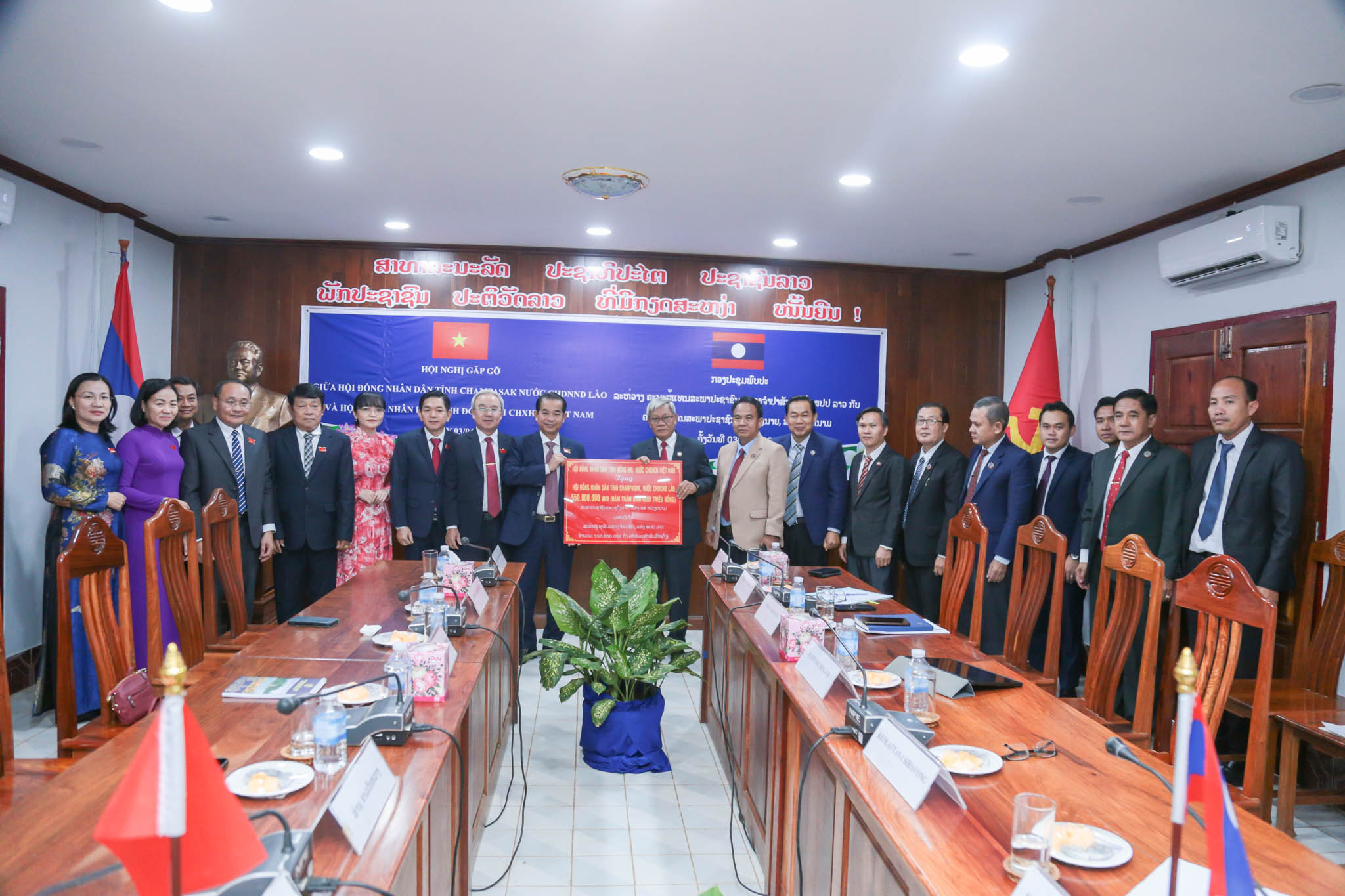ກອງປະຊຸມ ພົບປະລະຫວ່າງຄະນະຜູ້ແທນສະພາປະຊາຊົນ ແຂວງດັ້ງນາຍ ສສ ຫວຽດນາມ ແລະ ຄະນະຜູ້ແທນສະພາປະຊາຊົນ ແຂວງຈຳປາສັກ ຈັດຂຶ້ນໃນວັນທີ 3 ເມສາ 2024 ທີ່ຜ່ານມາ ຢູ່ທີ່ຫ້ອງປະຊຸມຂອງສະພາປະຊາຊົນແຂວງຈໍາປາສັກ ຝ່າຍແຂວງ ຈຳປາສັກ ມີ ສະຫາຍ ສາຍທອງ ໄຊຍະວົງ ຮອງເລຂາພັກແຂວງ ປະທານສະພາປະຊາຊົນແຂວງຈຳປາສັກ ພ້ອມຄະນະ, ຝ່າຍຄະນະຜູ້ແທນແຂວງດົ້ງນາຍ ນຳໂດຍ ສະຫາຍ ຖ່າຍບ້າວ ຄະນະປະຈຳພັກແຂວງ ປະທານສະພາປະຊາຊົນ ແຂວງ ດົ້ງນາຍ ພ້ອມຄະນະ.