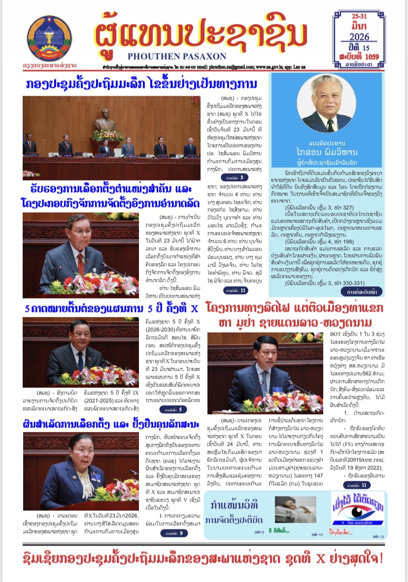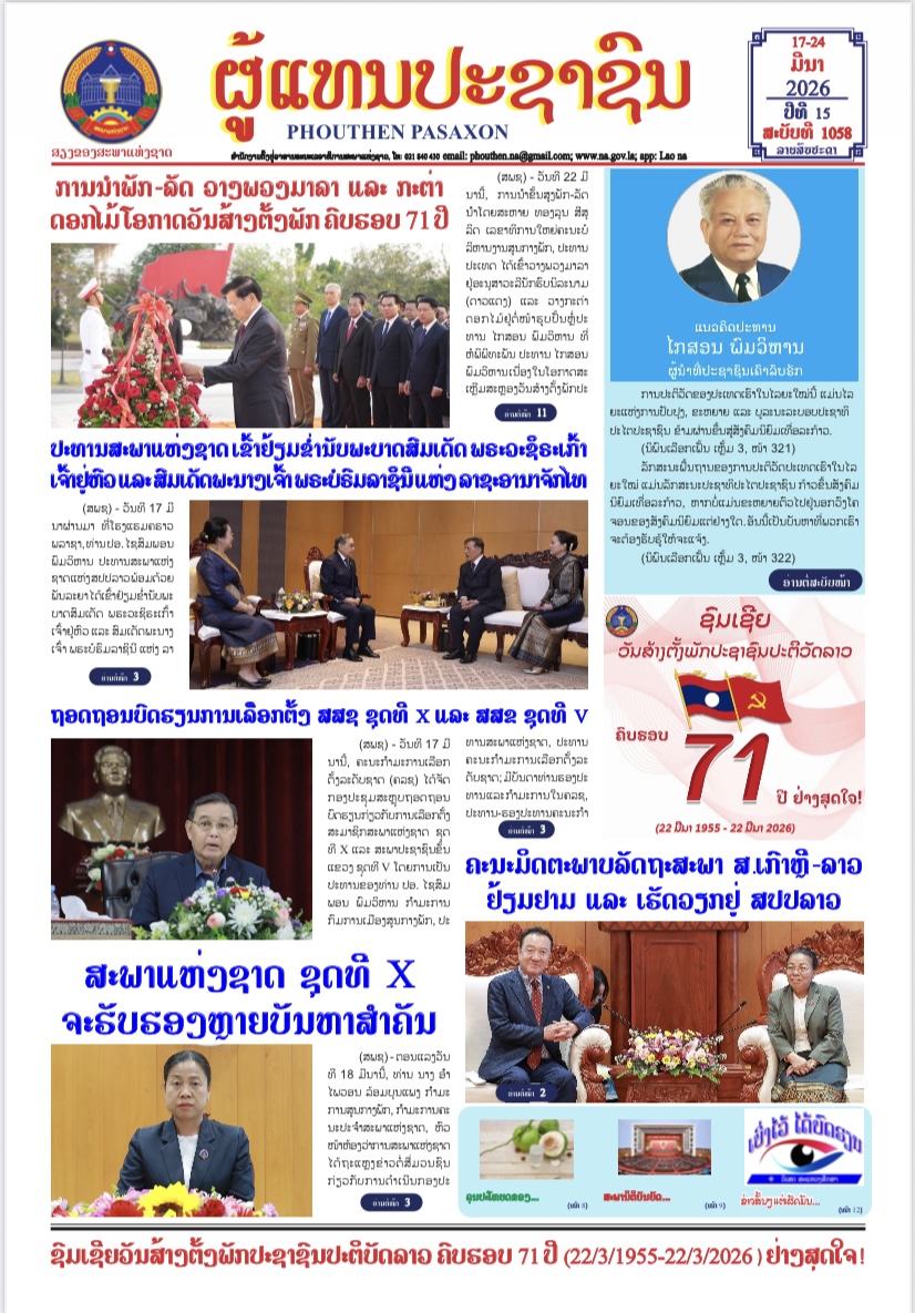 ສະບັບທີ 1059 ວັນທີ 25-31 ມີນາ 2026 ດາວໂຫຼດ ສະບັບທີ 1058 ວັນທີ 17-24 ມີນາ 2026 ດາວໂຫຼດ ສະບັບທີ 1057 09-16 ມີນາ 2026 ດາວໂຫຼດ ສະບັບທີ 1056 ວັນທີ 1-08 ມີນາ 2026 ດາວໂຫຼດ ສະບັບທີ 1055 22-28 ກຸມພາ 2026 ດາວໂຫຼດ ສະບັບທີ 1054 15-21 ກຸມພາ 2026 ດາວໂຫຼດ ສະບັບທີ 1053 08-14 ກຸມພາ 2026 ດາວໂຫຼດ ສະບັບທີ 1052 ວັນທີ 1-7 ກຸມພາ 2026 ດາວໂຫຼດ ສະບັບທີ 1051 ວັນທີ 25-31 ມັງກອນ 2026 ດາວໂຫຼດ ສະບັບທີ 1050 ວັນທີ 17-24 ມັງກອນ 2026 ດາວໂຫຼດ ສະບັບທີ 1049 ວັນທີ 09-16 ມັງກອນ 2026 ດາວໂຫຼດ ສະບັບທີ 1048 ວັນທີ 01-08 ມັງກອນ 2026 ດາວໂຫຼດ ສະບັບທີ 1047 ວັນທີ 25-31 ທັນວາ 2025 ດາວໂຫຼດ ສະບັບທີ 1046 ວັນທີ 17-25 ທັນວາ 2025 ດາວໂຫຼດ ສະບັບທີ 1045 ວັນທີ 09-16 ທັນວາ 2025 ດາວໂຫຼດ ສະບັບທີ 1044 ວັນທີ 1-8 ທັນວາ 2025 ດາວໂຫຼດ ສະບັບທີ 1043 ວັນທີ 24-30 ພະຈິກ 2025 ດາວໂຫຼດ ສະບັບທີ 1042 ວັນທີ 16-23 ພະຈິກ 2025 ດາວໂຫຼດ ສະບັບທີ 1041 ວັນທີ 09-15 ພະຈິກ 2025 ດາວໂຫຼດ ສະບັບທີ 1040 ວັນທີ 01-08 ພະຈິກ 2025 ດາວໂຫຼດ ສະບັບເລກທີ 1039 ວັນທີ 25-31 ຕຸລາ 2025 ດາວໂຫຼດ ສະບັບເລກທີ 1038 ວັນທີ 17-24 ຕຸລາ 2025 ດາວໂຫຼດ ສະບັບທີ 1037 ວັນທີ 9-16 ຕຸລາ 2025 ດາວໂຫຼດ ສະບັບທີ 1036 ວັນທີ 1-8 ຕຸລາ 2025 ດາວໂຫຼດ ສະບັບທີ 1035 ວັນທີ 23-30 ກັນຍາ 2025 ດາວໂຫຼດ ສະບັບທີ 1034 ວັນທີ 16-23 ກັນຍາ 2025 ດາວໂຫຼດ ສະບັບທີ 1033 ວັນທີ 9-15 ກັນຍາ 2025 ດາວໂຫຼດ ສະບັບເລກທີ 1032 ວັນທີ 01-08 ກັນຍາ 2025 ດາວໂຫຼດ ສະບັບເລກທີ 1031 ວັນທີ 25-31 ສິງຫາ 2025 ດາວໂຫຼດ ສະບັບເລກທີ 1030 ດາວໂຫຼດ ສະບັບເລກທີ 1029 ດາວໂຫຼດ ສະບັບເລກທີ 1028 ວັນທີ 1-8 ສິງຫາ 2025 ດາວໂຫຼດ ສະບັບເລກທີ 1027 ວັນທີ 25-31 ກໍລະກົດ 2025 ດາວໂຫຼດ ສະບັບເລກທີ 1026 ດາວໂຫຼດ ສະບັບເລກທີ 1025 ວັນທີ 09-16 ກໍລະກົດ 2025 ດາວໂຫຼດ ສະບັບເລກທີ 1024 ດາວໂຫຼດ ສະບັບເລກທີ 1023 ດາວໂຫຼດ ສະບັບເລກທີ 1022 ວັນທີ 16-23 ມິຖຸນາ 2025 ດາວໂຫຼດ ສະບັບເລກທີ 2021 ວັນທີ 09-15 ມິຖຸນາ 2024 ດາວໂຫຼດ ສະບັບເລກທີ 1020 ວັນທີ 01-08 ມິຖຸນາ 2025 ດາວໂຫຼດ ສະບັບເລກທີ 1019 ວັນທີ 25-31 ພຶດສະພາ 2025 ດາວໂຫຼດ ສະບັບເລກທີ 1018 ວັນທີ 17-24 ພຶດສະພາ 2025 ດາວໂຫຼດ ສະບັບເລກທີ 1017 ວັນທີ 09-16 ພຶດສະພາ 2025 ດາວໂຫຼດ ສະບັບເລກທີ 1016 ວັນທີ 1-8 ພຶດສະພາ 2025 ດາວໂຫຼດ ສະບັບເລກທີ 1015 ວັນທີ 24-30 ເມສາ 2025 ດາວໂຫຼດ ສະບັບເລກທີ 1014 ວັນທີ 17-23 ເມສາ 2025 ດາວໂຫຼດ ສະບັບເລກທີ 1013 ວັນທີ 09-16 ເມສາ 2025 ດາວໂຫຼດ ສະບັບເລກທີ 1012 ວັນທີ 01-08 ເມສາ 2025 ດາວໂຫຼດ ສະບັບເລກທີ 1011 24-31 ມີນາ 2025 ດາວໂຫຼດ ສະບັບເລກທີ 1010 ວັນທີ 17-23 ມີນາ 2025 ດາວໂຫຼດ ສະບັບເລກທີ 1009 ວັນທີ 09-16 ມີນາ 2025 ດາວໂຫຼດ ສະບັບເລກທີ 1008 ວັນທີ 01-08 ມີນາ 2025 ດາວໂຫຼດ ສະບັບເລກທີ 1007 ວັນທີ 22-28 ກຸມພາ 2025 ດາວໂຫຼດ ສະບັບເລກທີ 1006 ວັນທີ 15-21 ກຸມພາ 2025 ດາວໂຫຼດ ສະບັບເລກທີ 1005 ວັນທີ 08-14 ກຸມພາ 2025 ດາວໂຫຼດ ສະບັບເລກທີ 1004 01-07 ກຸມພາ 2025 ດາວໂຫຼດ ສະບັບເລກທີ 1003 25-31 ມັງກອນ 2025 ດາວໂຫຼດ ສະບັບເລກທີ 1002 17-24 ມັງກອນ 2025 ດາວໂຫຼດ ສະບັບເລກທີ 1001 09-16 ມັງກອນ 2025 ດາວໂຫຼດ ສະບັບເລກທີ 1000 01-08 ມັງກອນ 2025 ດາວໂຫຼດ ສະບັບເລກທີ 999 24-31 ທັນວາ 2024 ດາວໂຫຼດ ສະບັບເລກທີ 998 16-23 ທັນວາ 2024 ດາວໂຫຼດ ສະບັບເລກທີ 997 09-15 ທັນວາ 2024 ດາວໂຫຼດ ສະບັບເລກທີ 996 01-08 ທັນວາ 2024 ດາວໂຫຼດ ສະບັບເລກທີ 995 23-30 ພະຈິກ 2024 ດາວໂຫຼດ ສະບັບເລກທີ 994 16-22 ພະຈິກ 2024 ດາວໂຫຼດ ສະບັບເລກທ