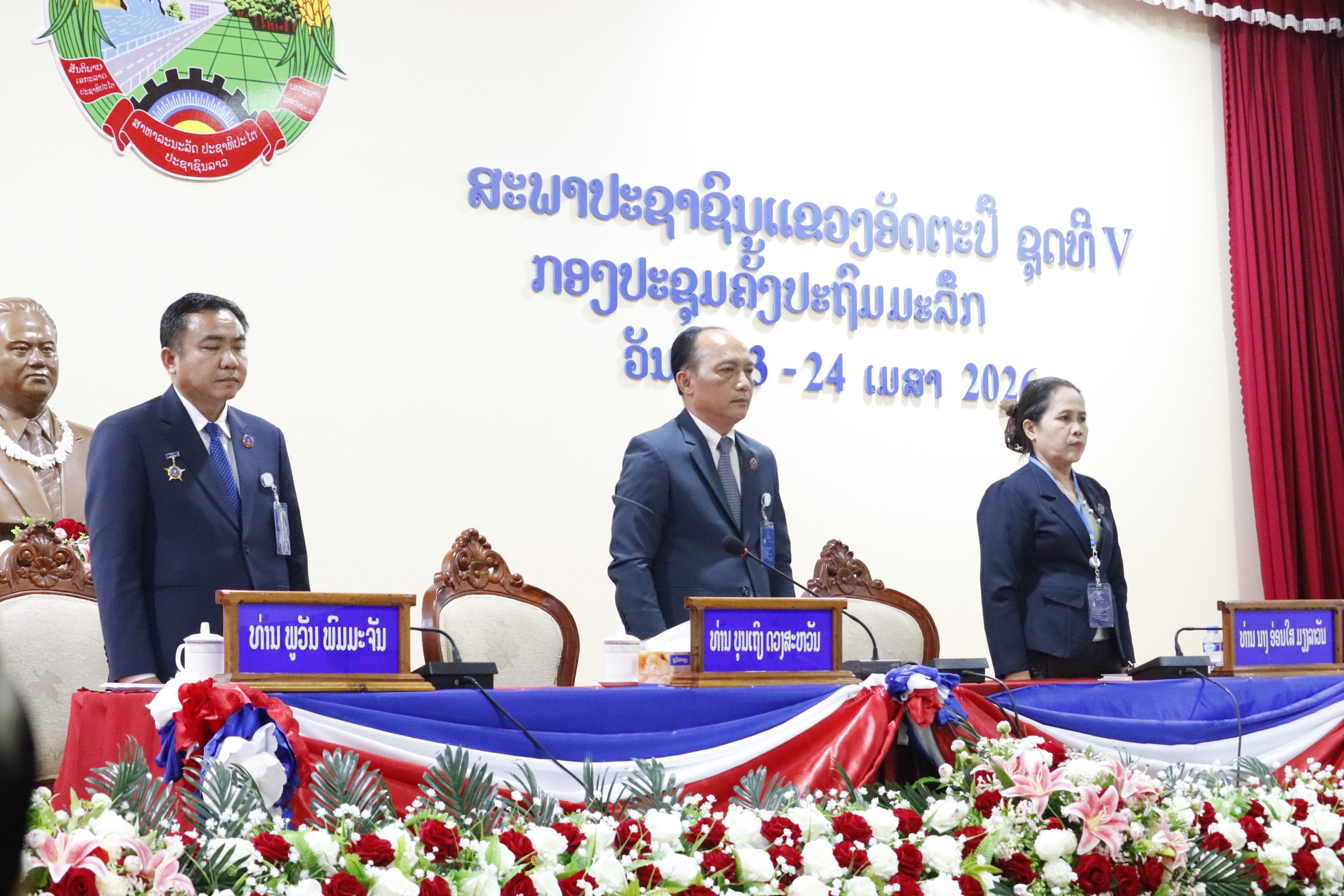 ຕອນບ່າຍວັນທີ 24 ເມສາ 2026, ທີ່ຫ້ອງປະຊຸມສະພາປະຊາຊົນແຂວງ, ກອງ​ປະຊຸມ​ຄັ້ງປະຖົມ​ມະລືກ​ ຂອງ​ສະພາ​ປະຊາຊົນແຂວງ ອັດຕະປື​ ຊຸດ​ທີ V ໄດ້ປິດລົງດ້ວຍຜົນສໍາເລັດອັນຈົບງາມ ໂດຍການເປັນປະທານຂອງ ທ່ານ ບຸນເຖິງ ດວງສະຫວັນ ກໍາມະການສູນກາງພັກ, ເລຂາຄະນະພັກແຂວງ, ປະທານສະພາປະຊາຊົນແຂວງອັດຕະປື, ເຂົ້າຮ່ວມມີທ່ານ ພົນຈັດຕະວາ ສຸລິໄຊ ພິຈິດ ກໍາມະການສໍາຮອງສູນກາງພັກ, ປະທານກໍາມາທິການ ປກຊ-ປກສ ສະພາແຫ່ງຊາດ, ສະມາຊິກສະພາແຫ່ງຊາດ ຊຸດທີ X ເຂດເລືອກຕັ້ງທີ 17, ມີບັນດາທ່ານຄະນະກໍາມະການປົກຄອງແຂວງ, ບັນດາທ່ານຫົວໜ້າພະແນກການ, ອົງການທຽບເທົ່າ, ບັນດາທ່ານສະມາຊິກສະພາແຫ່ງຊາດ ປະຈໍາເຂດເລືອກຕັ້ງທີ 17, ສະມາຊິກສະພາປະຊາຊົນແຂວງ ແລະ ແຂກຖືກເຊີນເຂົ້າຮ່ວມ. ກອງປະຊຸມໄດ້​ດຳ​ເນີນ​ເປັນເວລາ 2 ວັນ, ເຊິ່ງເຕັມ​ໄປ​ດ້ວຍ​ບັນຍາກາດ​ອັນ​ຟົດຟື້ນ ແລະ ເຄັ່ງຮ້ອນ ​ແຫ່ງ​ການ​ເສີມ​ຂະຫຍາຍ​ສິດ​ປະຊາທິປະ​ໄຕ ຂອງບັນດາທ່ານ ສະມາຊິກສະພາປະຊາຊົນແຂວງ ຊຸດທີ V ໃນການພິຈາລະນາ ແລະ ຮັບຮອງເອົາບັນດາເນື້ອໃນສຳຄັນ ທີ່ນຳມາພິຈາລະນາໃນກອງປະຊຸມຄັ້ງນີ້ ຢ່າງມີຜົນສຳເລັດຈົບງາມ. ກອງປະຊຸມໄດ້ດໍາເນີນການເລືອກຕັ້ງຮັບຮອງເອົາ ທ່ານ ບຸນເຖິງ ດວງສະຫວັນ ກໍາມະການສູນກາງພັກ ເລຂາພັກແຂວງ ເປັນປະທານສະພາປະຊາຊົນແຂວງອັດຕະປື ຊຸດທີ V, ເລືອກຕັ້ງ ທ່ານ ພູວັນ ພົມມະຈັນ ຄະນະປະຈໍາພັກແຂວງ ແລະ ທ່ານ ນາງ ອ່ອນໃສ ມຽງລາວັນ ກໍາມະການພັກແຂວງ ເປັນຮອງປະທານທານສະປະຊາຊົນແຂວງ ອັດຕະປື ຊຸດທີ V, ເລືອກຕັ້ງກໍາມະການຄະນະປະຈໍາສະພາປະຊາຊົນແຂວງ ແລະ ແຕ່ງຕັ້ງໂຄງປະກອບກົງຈັກການຈັດຕັ້ງຂອງສະພາປະຊົນແຂວງຊຸດທີ V ດັ່ງນີ້: ທ່ານ ນາງ ແສງອາລຸນ ວົງສາທິການ ເປັນກໍາມະການຄະນະປະຈໍາສະພາປະຊາຊົນແຂວງ ແລະ ປະທານຄະນະກໍາມະການເສດຖະກິດ,ການເງີນແລະສິ່ງແວດລ້ອມ, ທ່ານ ນາງ ຈັນທະລີ ສີສຸວົງ ກໍາມະການຄະນະປະຈໍາສະພາປະຊາຊົນແຂວງ ແລະ ປະທານຄະນະກໍາມະການ ປ້ອງກັນຊາດ-ປ້ອງກັນຄວາມສະຫງົບ ແລະ ຍຸຕິທໍາ, ທ່ານ ນາງ ສຸກວິໄລ ວຽງໄຊ ກໍາມະການຄະນະປະຈໍາສະພາປະຊາຊົນແຂວງ ແລະ ປະທານຄະນະກໍາມະການວັດທະນະທໍາ-ສັງຄົມ,ບັນດາເຜົ່າ ແລະ ສາສະໜາ, ທ່ານ ພົງສະຫວັນ ພົມມະວົງ ກໍາມະການຄະນະປະຈໍາສະພາປະຊາຊົນແຂວງ ແລະ ຫົວໜ້າຫ້ອງວ່າການສະພາປະຊາຊົນແຂວງ, ນອກນີ້ນີ້ຍັງໄດ້ຜ່ານມະຕິຂອງຄະນະປະຈໍາສະພາປະຊາຊົນແຂວງ ວ່າດ້ວຍການແຕ່ງຕັ້ງຮອງປະທານຄະນະກໍາມະການ, ຮອງຫົວໜ້າຫ້ອງວ່າການສະພາປະຊາຊົນແຂວງ ແລະ ສະມາຊິກສະພາປະຊາຊົນແຂວງ ປະຈໍາການ    ກອງປະຊຸມຍັງໄດ້ ພິຈະລະນາຮັບຮອງເອົາ ແຜນພັດທະນາເສດຖະກິດ-ສັງຄົມ ແລະ ແຜນງົບ ປະມານແຫ່ງລັດ 5 ປີ ຂັ້ນແຂວງ (2026-2030) ຂອງແຂວງ; ພິຈະລະນາຮັບຮອງເອົາ ແຜນການເຄື່ອນໃຫວວຽກງານ 05 ປີ (2026-2030) ຂອງອົງການໄອຍະການປະຊາຊົນແຂວງ ; ພິຈະລະນາຮັບຮອງ ແຜ່ນການເຄື່ອນໃຫວວຽກງານ 05 ປີ (2026-2030)  ສານປະຊາຊົນແຂວງ; ພິຈະລະນາຮັບຮອງ ແ
