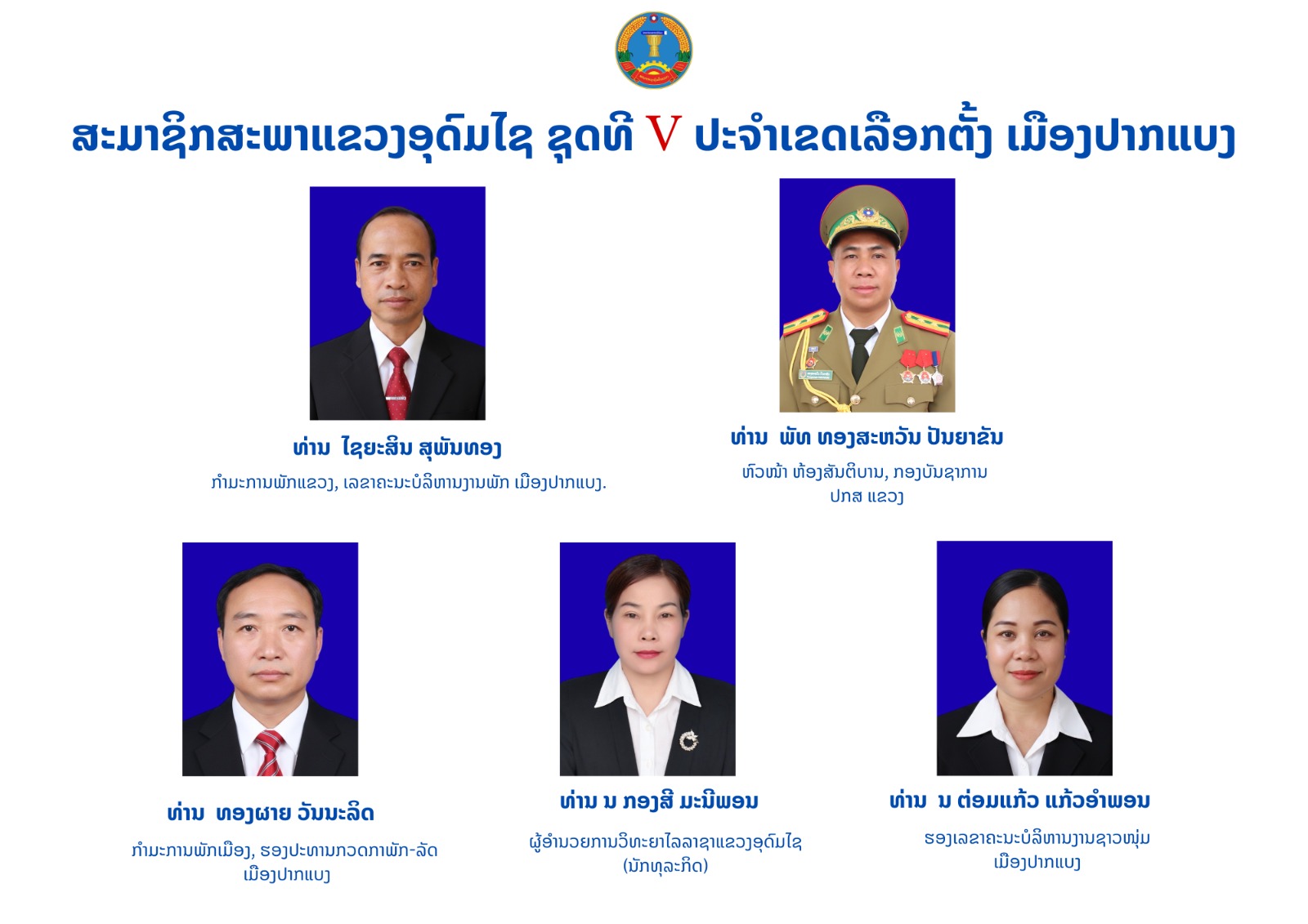 ຜົນການເລືອກຕັ້ງສະມາຊິກສະພາປະຊາຊົນແຂວງອຸົດມໄຊ ຊຸດທີ V.