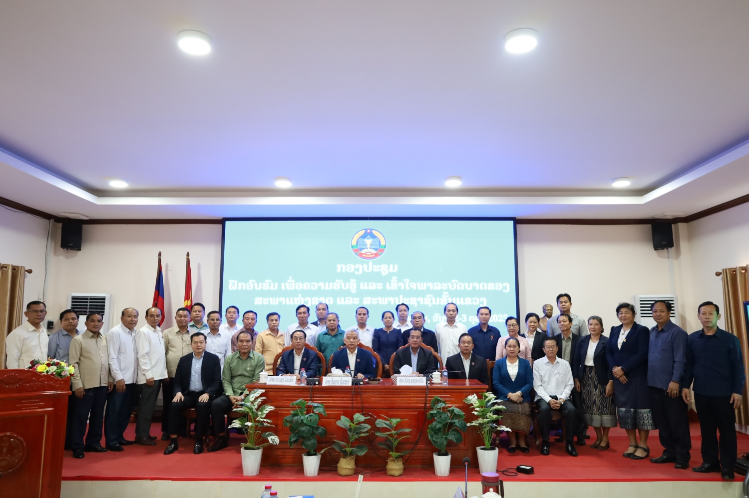 ໃນວັນທີ 2 ຕຸລາ 2025 ທີ່ຫ້ອງປະຊຸມສະພາປະຊາຊົນແຂວງຄຳມ່ວນ ໄດ້ຈັດກອງປະຊຸມຝຶກອົບຮົມເພື່ອຄວາມຮັບຮູ້ ແລະ ເຂົ້າໃຈພາລະບົດບາດຂອງສະພາແຫ່ງຊາດ ແລະ ສະພາປະຊາຊົນຂັ້ນແຂວງ ໂດຍການເປັນປະທານຂອງທ່ານ ສົມມາດ ພົລເສນາ ຮອງປະທານສະພາແຫ່ງຊາດ, ໂດຍການເຂົ້າຮ່ວມມີ ທ່ານ ວັນໄຊ ພອງສະຫວັນ ເລຂາຄະນະບໍລິຫານງານພັກແຂວງຄໍາມ່ວນ, ທ່ານ ຄຳແພງ ວິລະພັນ ປະທານກຳມາທິການກົດໝາຍ ສະພາແຫ່ງຊາດ, ທ່ານ ບຸນມີ ພິມມະສອນ ປະທານສະພາປະຊາຊົນແຂວງຄໍາມ່ວນ ພ້ອມດ້ວຍບັນດາທ່ານສຳມະນາກອນ ເຂົ້າຮ່ວມຢ່າງພ້ອມພຽງ.