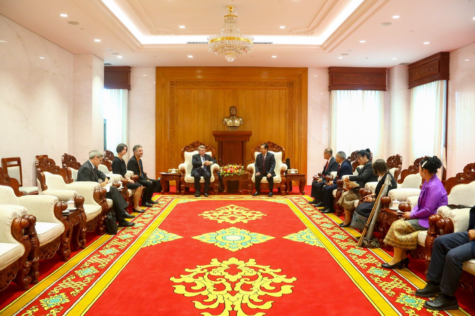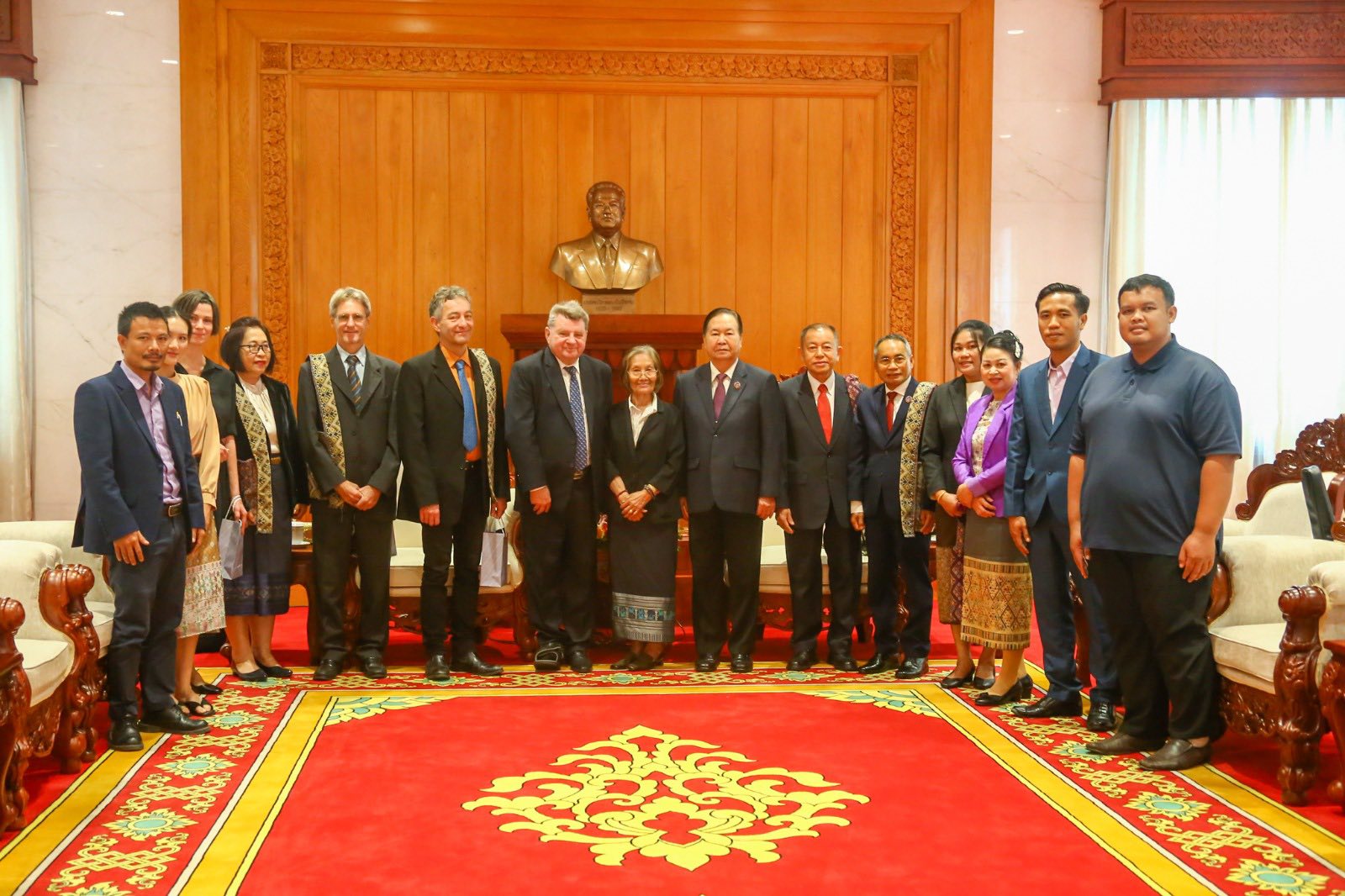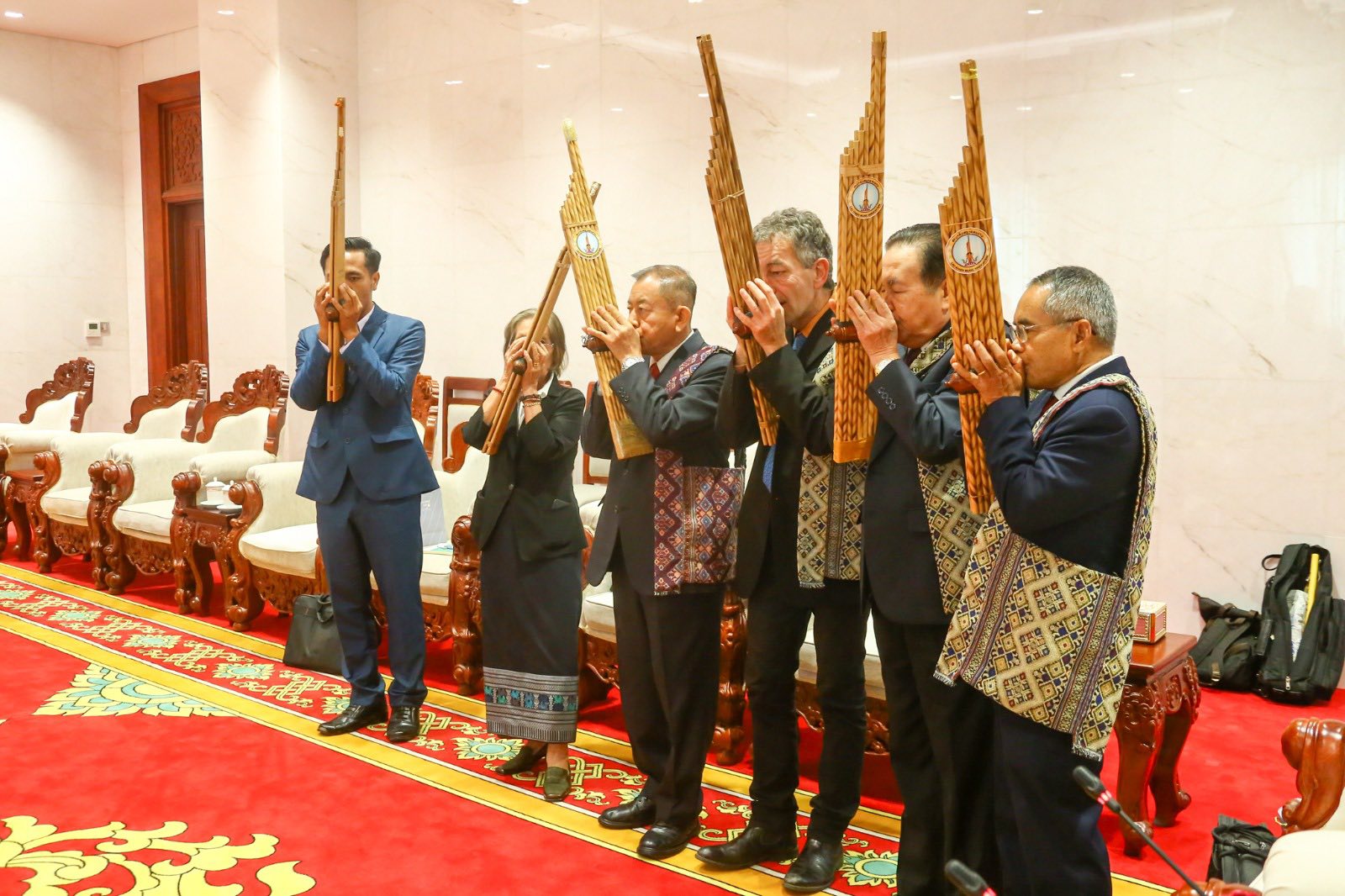 ​(ສພຊ)​ – ວັນທີ 5 ພະຈິກຜ່ານມາ, ສຈ. ປອ. ຈະເລີນ ເຍຍປາວເຮີ ຮອງປະທານສະພາແຫ່ງຊາດ, ປະທານກິດຕິມະສັກສະມາຄົມສຽງແຄນລາວ ໄດ້ຕ້ອນຮັບການເຂົ້າຢ້ຽມຂໍ່ານັບຂອງທ່ານ ລາສຊະໂລ ດາກົກສ໌ (László DÁKÓCS) ເອກອັກຄະລັດຖະທູດວິສາມັນຜູ້ມີອຳນາດເຕັມແຫ່ງປະເທດຮົງກາລີ ປະຈຳ ສປປລາວ ພ້ອມດ້ວຍທ່ານ ເບລາ ອາໂກສໂຕນ (Béla Ágoston) ນັກດົນຕີ ແລະ ອາຈານສອນດົນຕີຊາວຮົງກາລີ ແລະ ຄະນະ ເນື່ອງໃນໂອກາດເດີນທາງມາຢ້ຽມຢາມ ແລະ ເຮັດວຽກ ຢູ່ ສປປລາວ; ໂອກາດນີ້, ສຈ. ປອ. ຈະເລີນ ເຍຍປາວເຮີ ໄດ້ສະແດງຄວາມປິຕິຍິນດີ ແລະ ຕ້ອນຮັບຢ່າງອົບອຸ່ນຕໍ່ຄະນະ ທັງກ່າວວ່າ ການມາຢ້ຽມຢາມຄັ້ງນີ້ ແມ່ນມີຄວາມໝາຍສຳຄັນ, ໂດຍສະເພາະແມ່ນໃນທ່າມກາງບັນຍາກາດທີ່ທົ່ວປວງຊົນລາວທັງຊາດ ພວມສ້າງຜົນງານຂໍ່ານັບຮັບຕ້ອນວັນຊາດທີ 2 ທັນວາ ຄົບຮອບ 50 ປີ ແລະ ຢູ່ໃນໄລຍະງານບຸນນະມັດສະການພະທາດຫຼວງ.