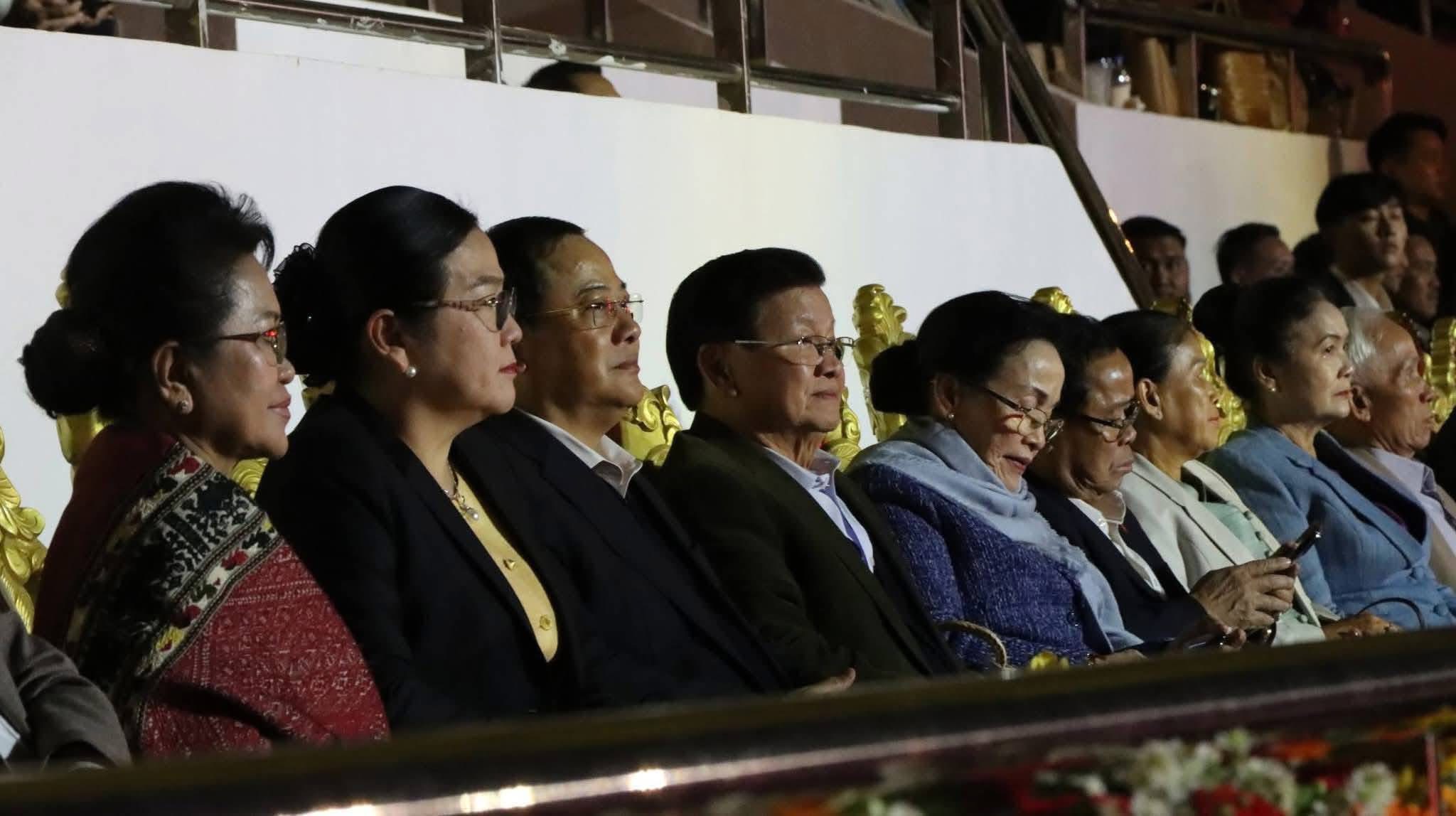 (ສພຊ) – ງານສະແດງສິລະປະແບບພິເສດ ເພື່ອຂໍ່ານັບຊົມເຊີຍຜົນສໍາເລັດກອງປະຊຸມໃຫຍ່ຜູ້ແທນທົ່ວປະເທດ ຄັ້ງທີ XII ຂອງພັກປະຊາຊົນປະຕິວັດລາວ ແລະ ລະນຶກເຖິງວັນເກີດປະທານ ໄກສອນ ພົມວິຫານ ຄົບຮອບ 105 ປີ ພາຍໃຕ້ຫົວຂໍ້ “ລາວ-ຫວຽດນາມ ບົດເພງແຫ່ງມິດຕະພາບ” ຈັດຂຶ້ນໃນວັນທີ 9 ມັງກອນຜ່ານມາ ທີ່ສະໜາມກິລາແຫ່ງຊາດ ຫຼັກ 16 ນະຄອນຫຼວງວຽງຈັນ (ນວ) ໂດຍໃຫ້ກຽດເຂົ້າຮ່ວມຂອງສະຫາຍ ທອງລຸນ ສີສຸລິດ ເລຂາທິການໃຫຍ່ຄະນະບໍລິຫານງານສູນກາງພັກ, ປະທານປະເທດ ພ້ອມດ້ວຍພັນລະຍາ; ສະຫາຍ ຫງວຽນ ວັນ ຮຸ່ງ ກໍາມະການສູນກາງພັກກອມມູນິດຫວຽດນາມ, ລັດຖະມົນຕີກະຊວງວັດທະນະທຳ, ກິລາ ແລະ ທ່ອງທ່ຽວ; ບັນດາການນໍາ ແລະ ອະດີດການນໍາຂັ້ນສູງຂອງພັກ-ລັດ, ທູຕານຸທູດ, ພະນັກງານ-ທະຫານ-ຕຳຫຼວດ ແລະ ປະຊາຊົນຊາວ ນວ ແລະ ຊາວຫວຽດນາມ ພ້ອມດ້ວຍຄະນະນັກສະແດງສິລະປະວັນນະຄະດີ ລາວ-ຫວຽດນາມ ເຂົ້າຮ່ວມຢ່າງຫຼວງຫຼາຍ.