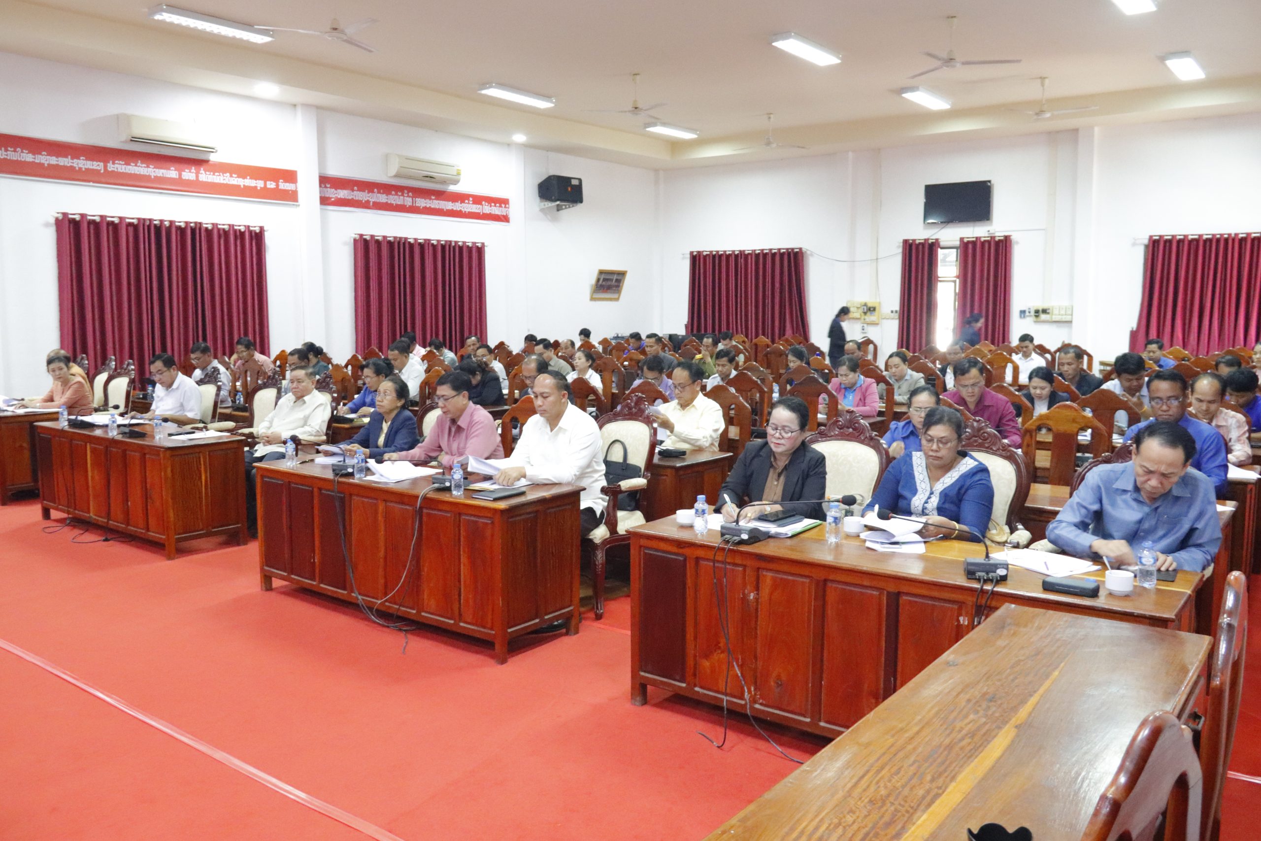 ກອງປະຊຸມ ໄດ້ຮັບຟັງ ບັນດາເນື້ອໃນເອກະສານທີ່ສໍາຄັນຕ່າງໆກ່ຽວກັບການກະກຽມບັ້ນເລືອກຕັ້ງສະມາຊິກສະພາແຫ່ງຊາດ ຊຸດທີ X ແລະ ສະພາປະຊາຊົນຂັ້ນແຂວງ ຊຸດທີ V ໂດຍສະເພາະ ບົດລາຍງານກ່ຽວກັບການກະກຽມໃຫ້ແກ່າການເລືອກຕັ້ງສະມາຊິກສະພາແຫ່ງຊາດ ຊຸດທີ X ແລະ ສະພາປະຊາຊົນຂັ້ນແຂວງ ຊຸດທີ V, ຂໍ້ຕົກລົງ ຂອງຄະນະປະຈໍາສະພາປະຊາຊົນແຂວງ ສະບັບເລກທີ 186/ຄປຈ ລົງວັນທີ 5 ທັນວາ 2025 ວ່າດ້ວຍການແຕ່ງຕັ້ງຄະນະກໍາມະການເລືອກຕັ້ງຂັ້ນແຂວງ ແລະ ບັນດາອະນຸກໍາມະການ ເພື່ອດໍາເນີນການເລືອກຕັ້ງສະມາຊິກສະພາແຫ່ງຊາດ ຊຸດທີ X ແລະ ສະພາປະຊາຊົນຂັ້ນແຂວງ ຊຸດທີ V, ຮ່າງມະຕິຂອງຄະນະກໍາມະການເລືອກຕັ້ງຂັ້ນແຂວງວ່າດ້ວຍການແບ່ງຄວາມຮັບຜິດຊອບພາຍໃນຄະນະກໍາມະການເລືອກຕັ້ງຂັ້ນແຂວງ ເພື່ອການເລືອກຕັ້ງສະມາຊິກສະພາແຫ່ງຊາດ ຊຸດທີ X ແລະ ສະພາປະຊາຊົນຂັ້ນແຂວງ ຊຸດທີ V, ຮ່າງແຜນດໍາເນີນງານຂອງຄະນະກໍາມະການເລືອກຕັ້ງຂັ້ນແຂວງ ເພຶ່ອການເລືອກຕັ້ງສະມາຊິກສະພາແຫ່ງຊາດ ຊຸດທີ X ແລະ ສະພາປະຊາຊົນຂັ້ນແຂວງ ຊຸດທີ V, ຜ່ານຄໍາແນະນໍາຂອງຄະນະປະຈໍາພັກແຂວງ ກ່ຽວກັບການເພີ່ມທະວີ ການນໍາພາ-ຊີ້ນໍາຂອງຄະນະພັກທຸກຂັ້ນຕໍ່ການເລືອກຕັ້ງສະມາຊິກສະພາແຫ່ງຊາດ ຊຸດທີ X ແລະ ສະພາປະຊາຊົນຂັ້ນແຂວງ ຊຸດທີ V ແລະ ຜ່ານແຈ້ງການແນະນໍາກ່ຽວກັບການສ້າງແຜນງົບປະມານຮັບໃຊ້ໃຫ້ແກ່ການເລືອກຕັ້ງສະມາຊິກສະພາແຫ່ງຊາດ ຊຸດທີ X ແລະ ສະພາປະຊາຊົນຂັ້ນແຂວງ ຊຸດທີ V.ພ້ອມນີ້, ຜູ້ແທນກອງປະຊຸມໄດ້ສົນທະນາແລກປ່ຽນປະກອບຄໍາຄິດເຫັນ ດ້ວຍຄວາມຮັບຜິດຊອບສູງ ລ້ວນແລ້ວແຕ່ມີເຫດມີຜົນ ກົງໄປກົງມາ ມີທັງຂໍ້ສະດວກ, ຂໍ້ຫຍຸ້ງຍາກ, ຄວາມຖືກຕ້ອງສອດຄ່ອງ ແລະ ຊອກວີທີທາງແກ້ໄຂໃຫ້ທັນການໃນການກະກຽມ ແລະ ດໍາເນີນການເລືອກຕັ້ງ ໃຫ້ສໍາເລັດຕາມຈຸດປະສົງ ແລະ ລະດັບຄາດໝາຍທີ່ກໍານົດໄວ້.ໂອກາດດັ່ງກ່າວ, ທ່ານ ພົທ ວັນທອງ ກອງມະນີ ຍັງໄດ້ມີຄໍາເຫັນວ່າ: ເພຶ່ອຮັບປະກັນໃຫ້ແກ່ການກະກຽມ ແລະ ດໍາເນີນ ການເລືອກຕັ້ງສະມາຊິກສະພາແຫ່ງຊາດ ຊຸດທີ X ແລະ ສະພາປະຊາຊົນຂັ້ນແຂວງ ຊຸດທີ V. ຈົ່ງພ້ອມກັນເຊື່ອມຊຶມ ແລະ ຈັດຕັ້ງຜັນຂະຫຍາຍ ເນື້ອໃນຈິດໃຈ ຂອງກອງປະຊຸມໃນຄັ້ງນີ້ໃຫ້ສໍາເລັດຜົນເປັນຢ່າງດີ, ສືບຕໍ່ປັບປຸງເນື້ອໃນເອກະສານຕາມຄໍາເຫັນຂອງກອງປະຊຸມໃຫ້ຄົບຖ້ວນສົມບູນ, ບັນດາອະນຸກໍາມະການຕ່າງໆ ຈົ່ງຮີບຮ້ອນຈັດຕັ້ງຜັນຂະຫຍາຍ ມະຕິກົມການເມືອງສູນກາງພັກ ແລະ ແຜນດໍາເນີນງານ ຂອງຄະນະກໍາມະການເລືອກຕັ້ງຂັ້ນແຂວງ ໃຫ້ເປັນແຜນວຽກຕົວຈິງ ຂອງອະນຸກໍາມະການ ຂອງຕົນ, ຈັດຕັ້ງໂຄສະນາຜ່ານສື່ໆຕ່າງໆ ໃຫ້ປະຊາຊົນໄດ້ຮັບຮູ້ແລະເຂົ້າໃຈຢ່າງເປັນຂະບວນການຟົ້ນຟື້ນ.
