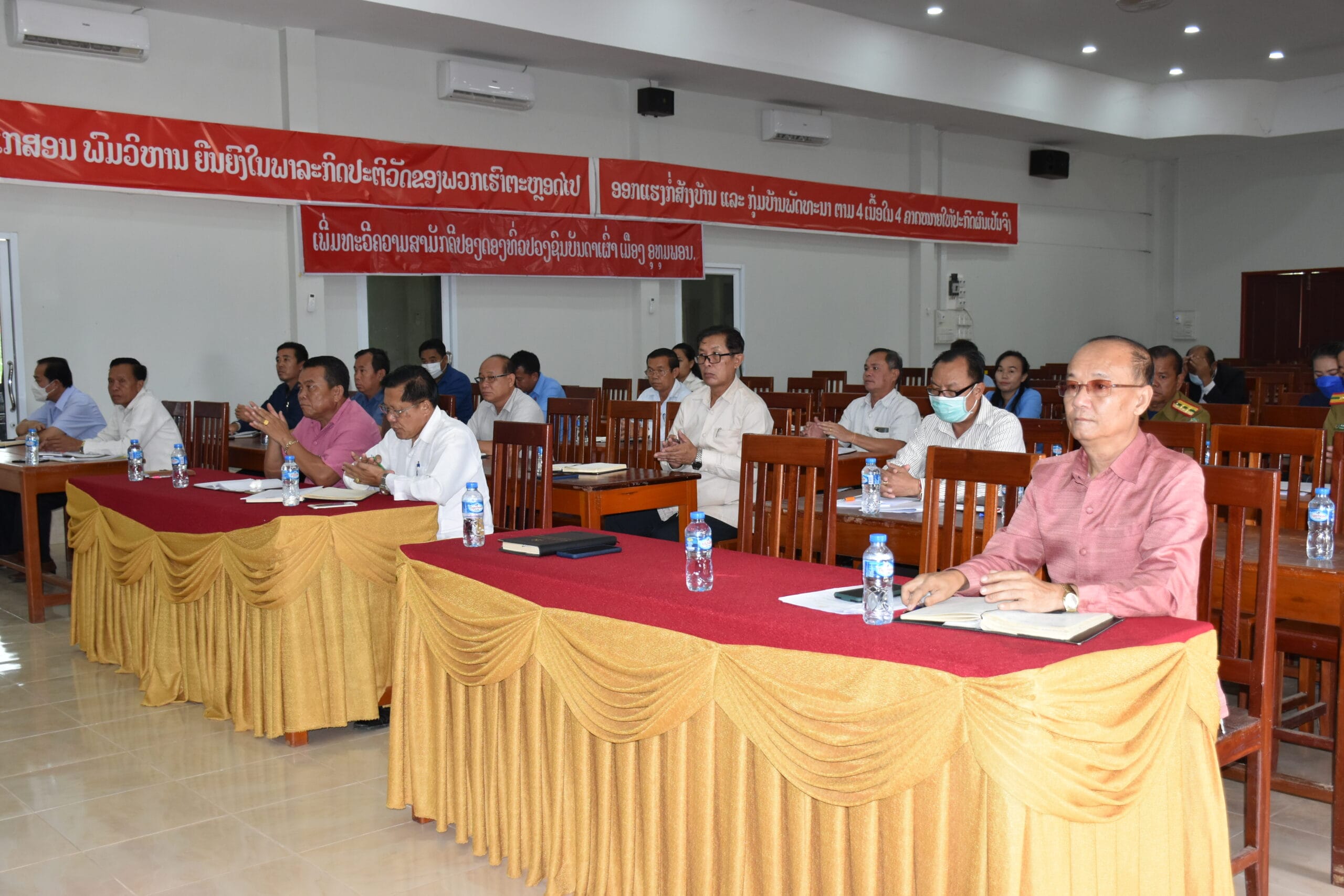 ຕອນທ້າຍຂອງກອງປະຊຸມ ທ່ານນາງ ພູທອນ ແກ້ວພູວົງ ກໍ່ໄດ້ຮຽກຮ້ອງໃຫ້ຄະນະນໍາຂອງເມືອງ ແລະ ພາກສ່ວນຕ່າງໆ ຈົ່ງພ້ອມກັນສືບຕໍ່ນຳເອົາເນື້ອໃນຂອງ 02 ວາລະແຫ່ງຊາດ ໄປຈັດຕັ້ງຜັນຂະຫຍາຍໃຫ້ມີຄວາມສອດຄ່ອງ ແລະ ພ້ອມກັນຈັດຕັ້ງປະຕິບັດໃຫ້ເກີດດອກອອກຜົນ.