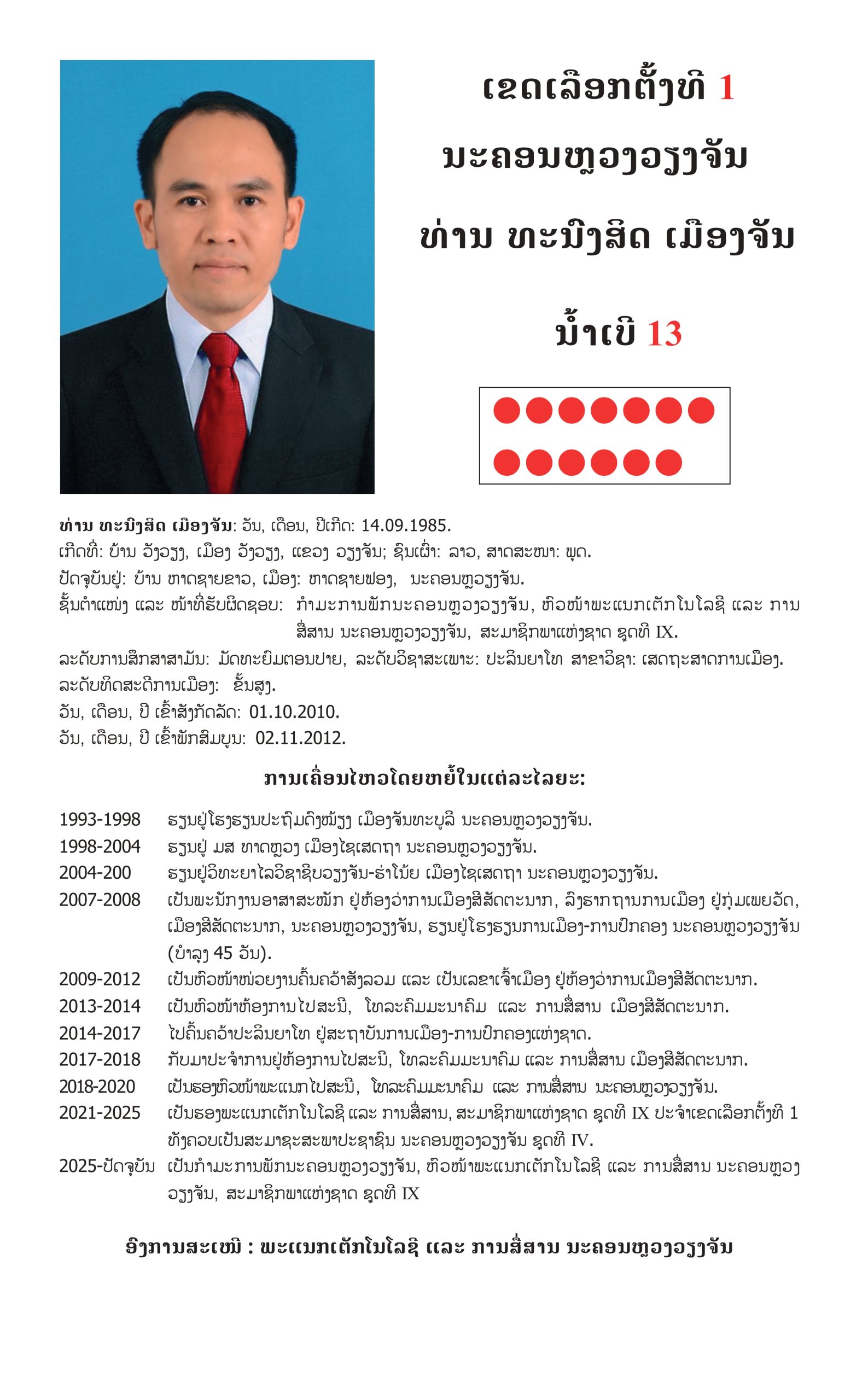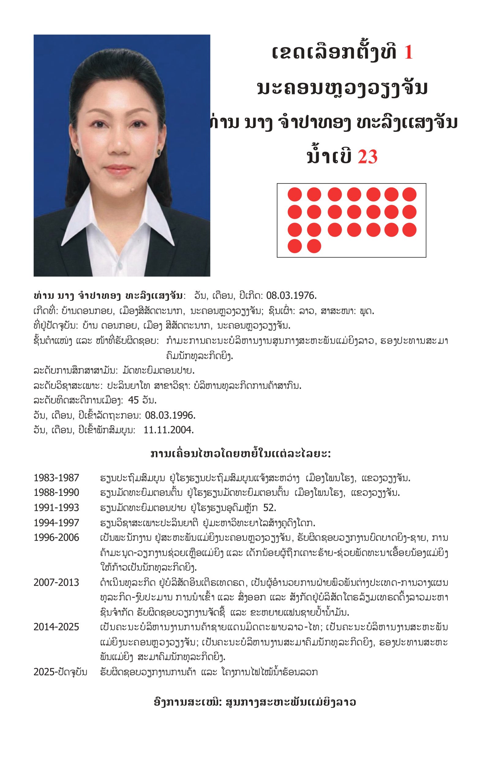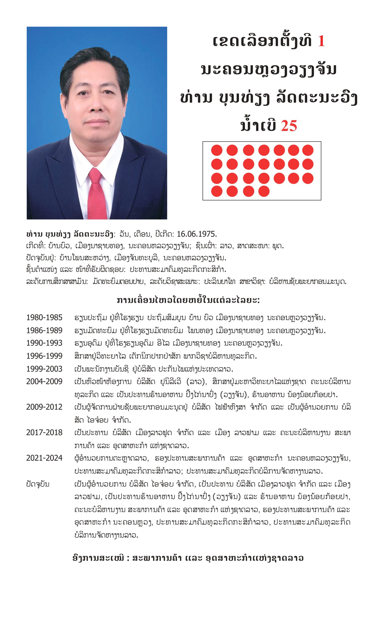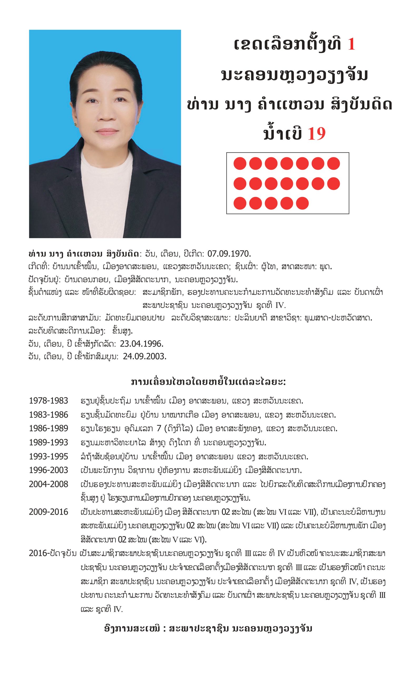#ເຂດເລືອກຕັ້ງທີ 1 ນະຄອນຫຼວງວຽງຈັນ: ມີຈຳນວນຜູ້ສະໝັກ 25 ທ່ານ, ເລືອກເອົາ 19 ທ່ານ.