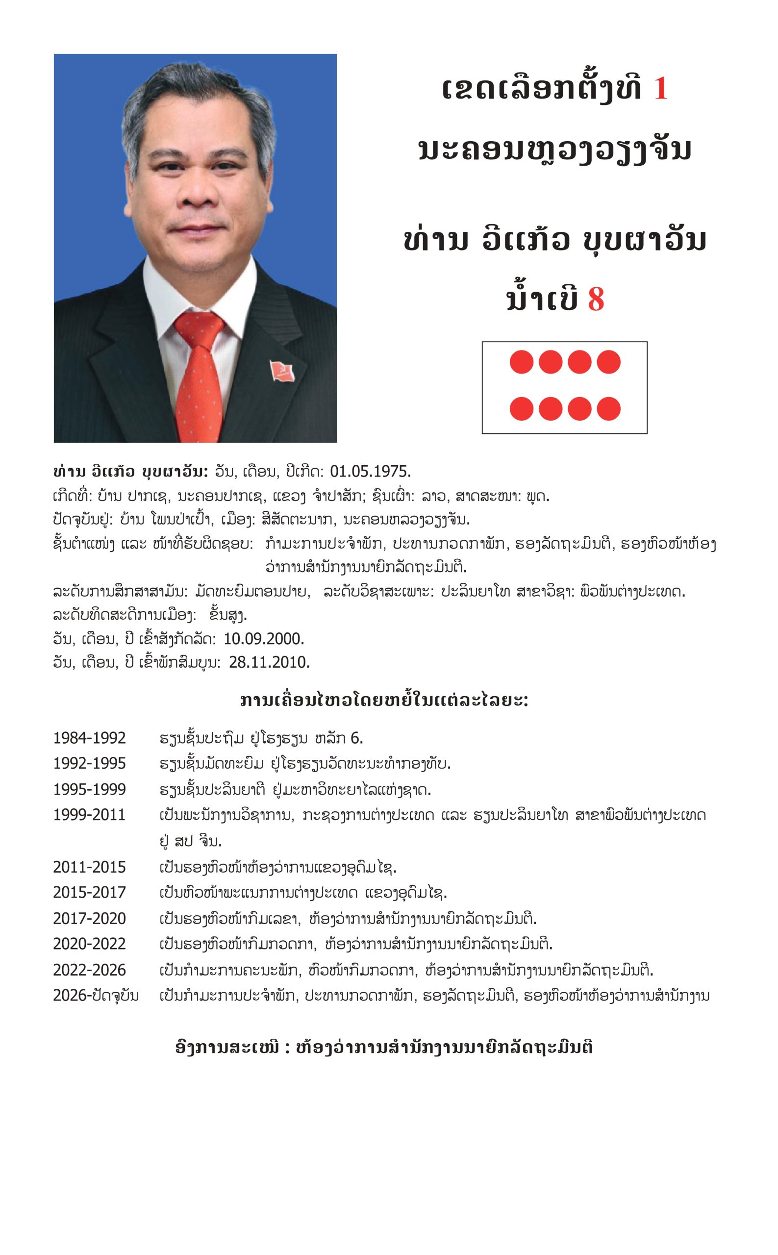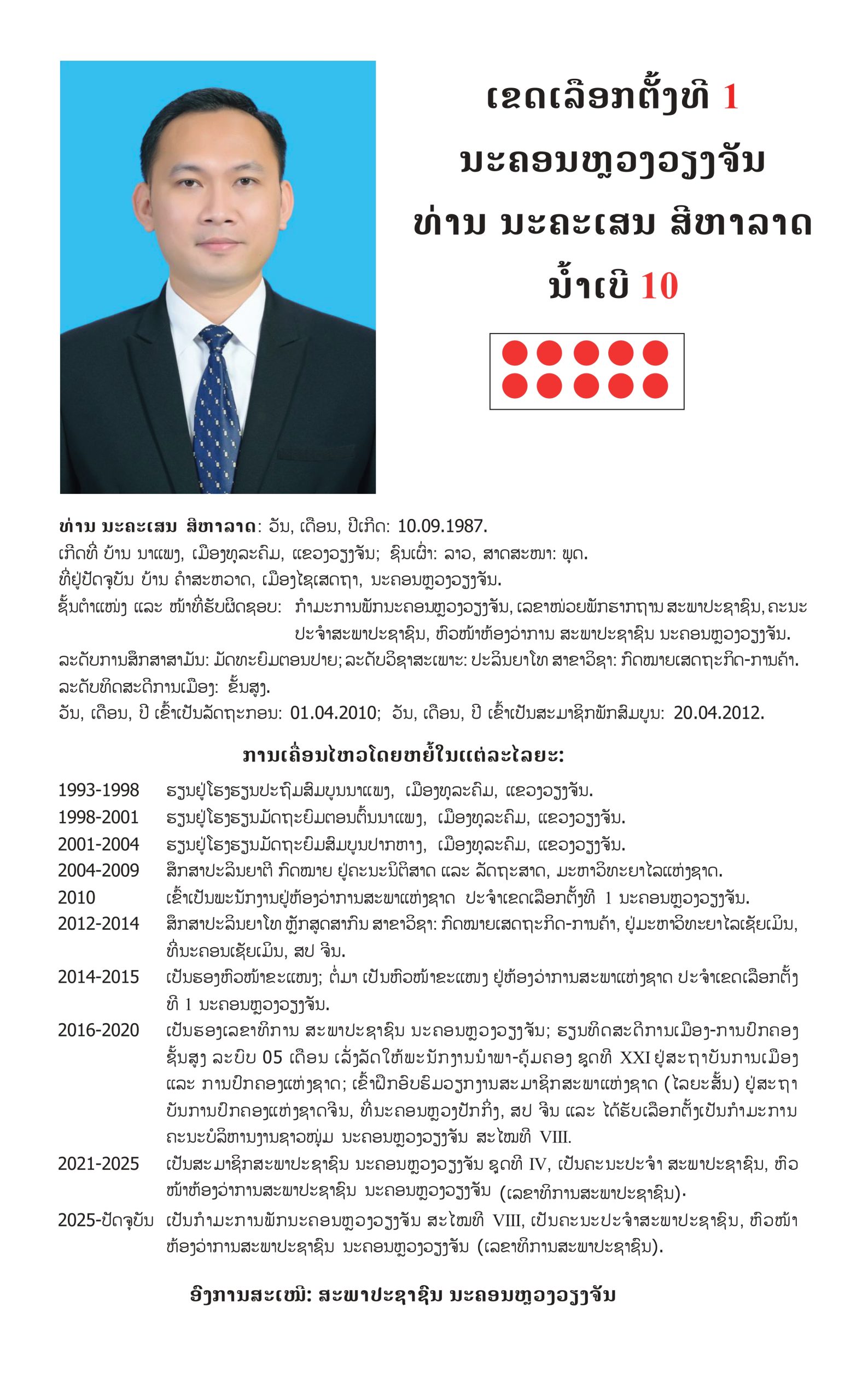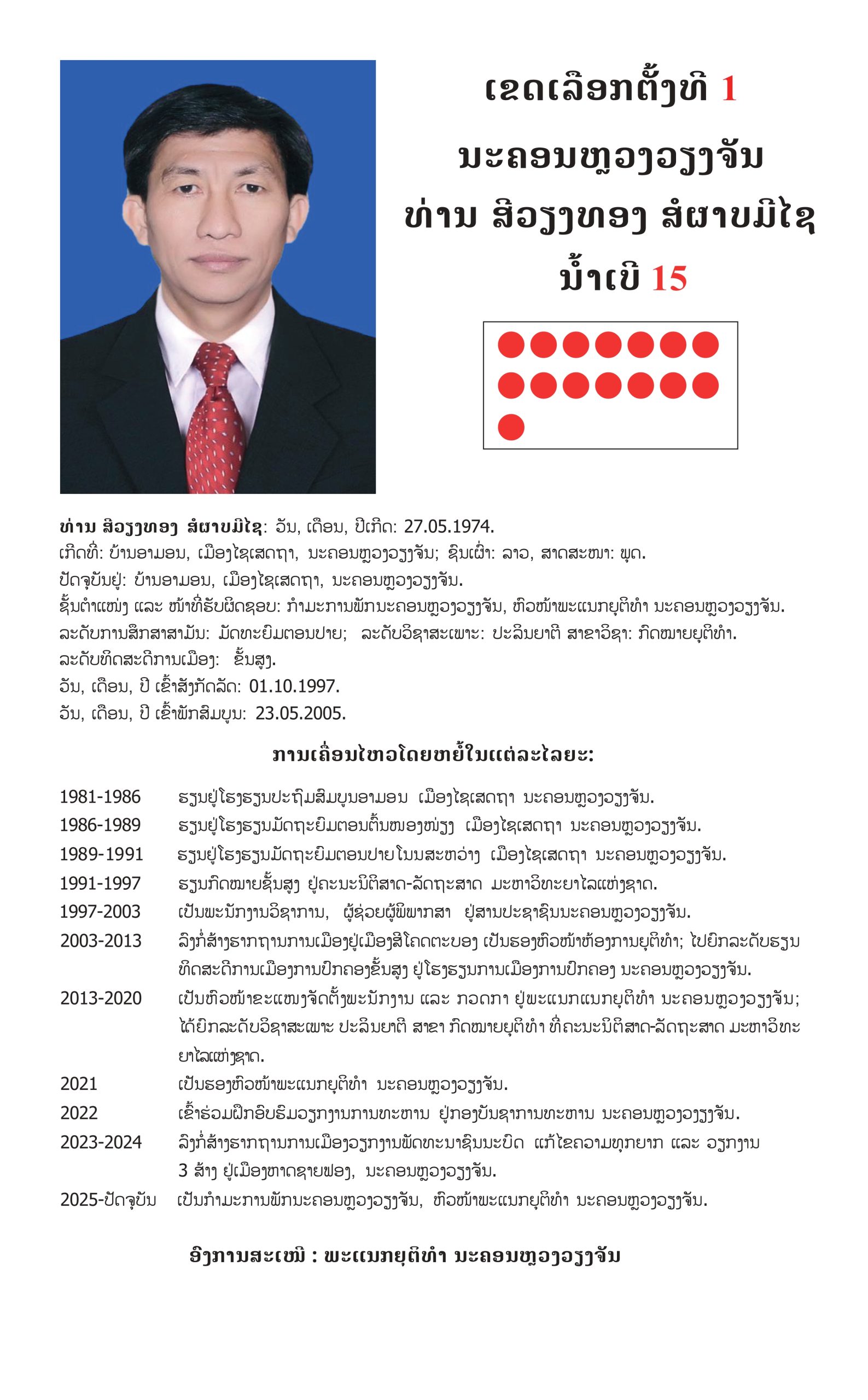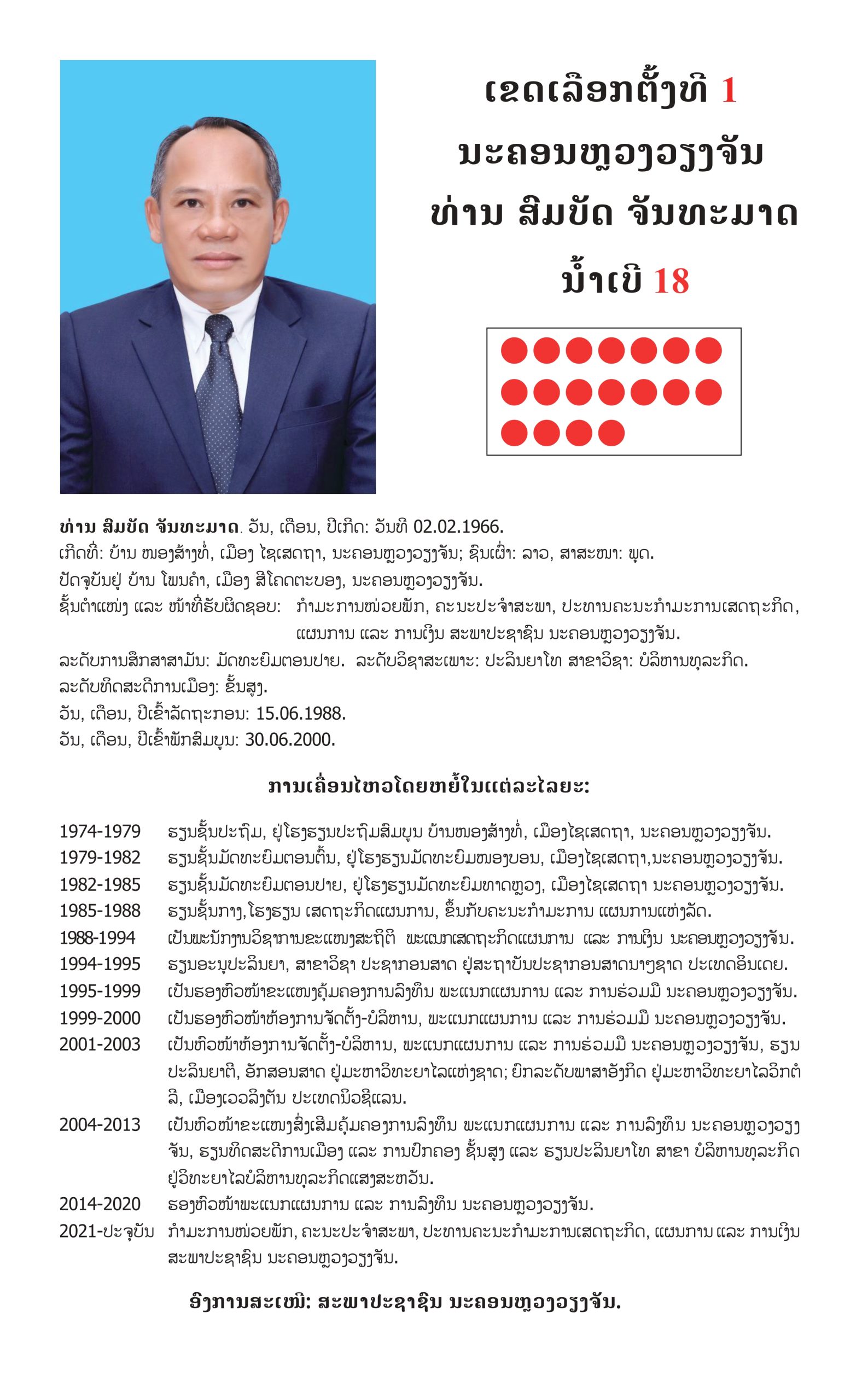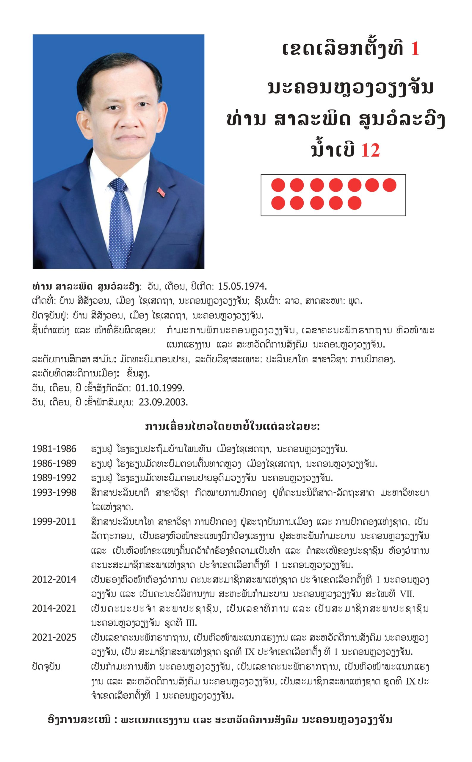 #ເຂດເລືອກຕັ້ງທີ 1 ນະຄອນຫຼວງວຽງຈັນ: ມີຈຳນວນຜູ້ສະໝັກ 25 ທ່ານ, ເລືອກເອົາ 19 ທ່ານ.