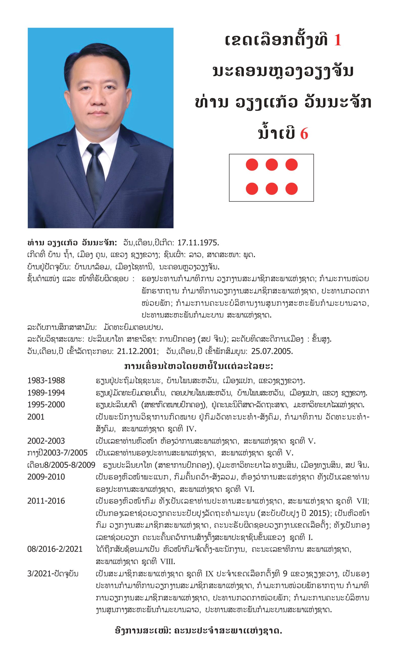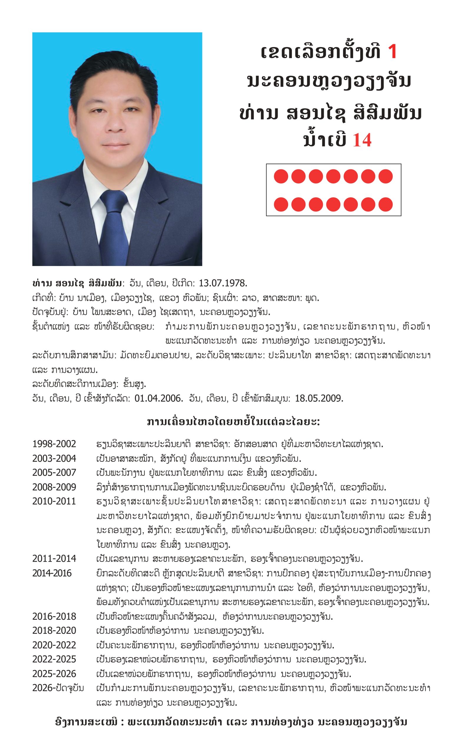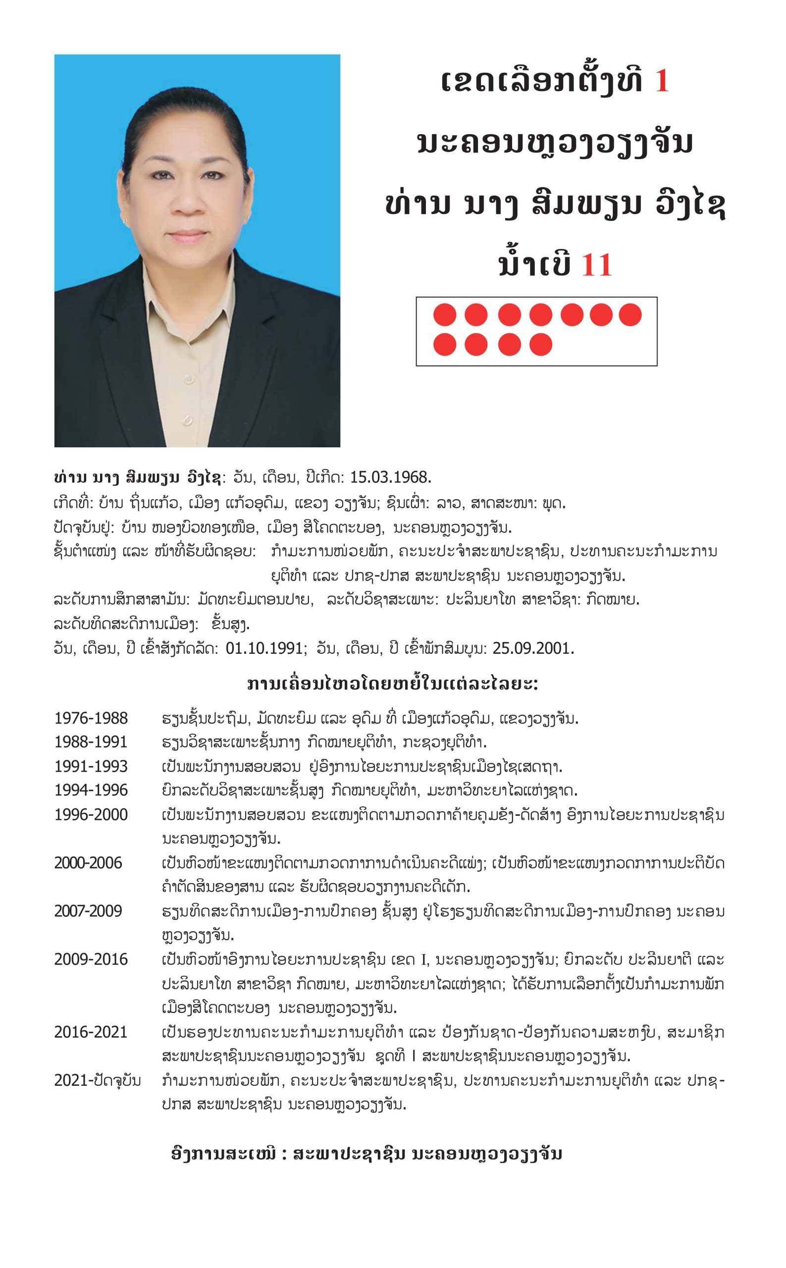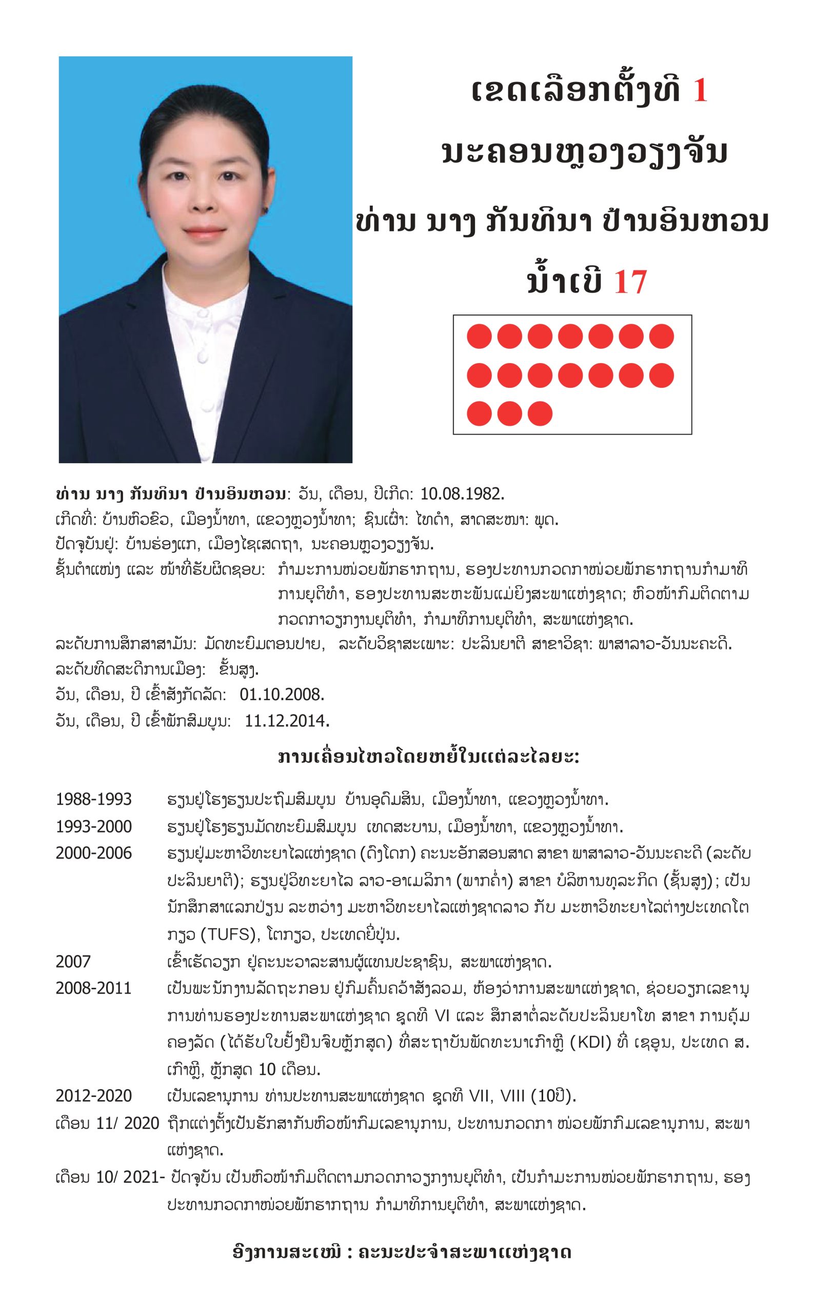 #ເຂດເລືອກຕັ້ງທີ 1 ນະຄອນຫຼວງວຽງຈັນ: ມີຈຳນວນຜູ້ສະໝັກ 25 ທ່ານ, ເລືອກເອົາ 19 ທ່ານ.