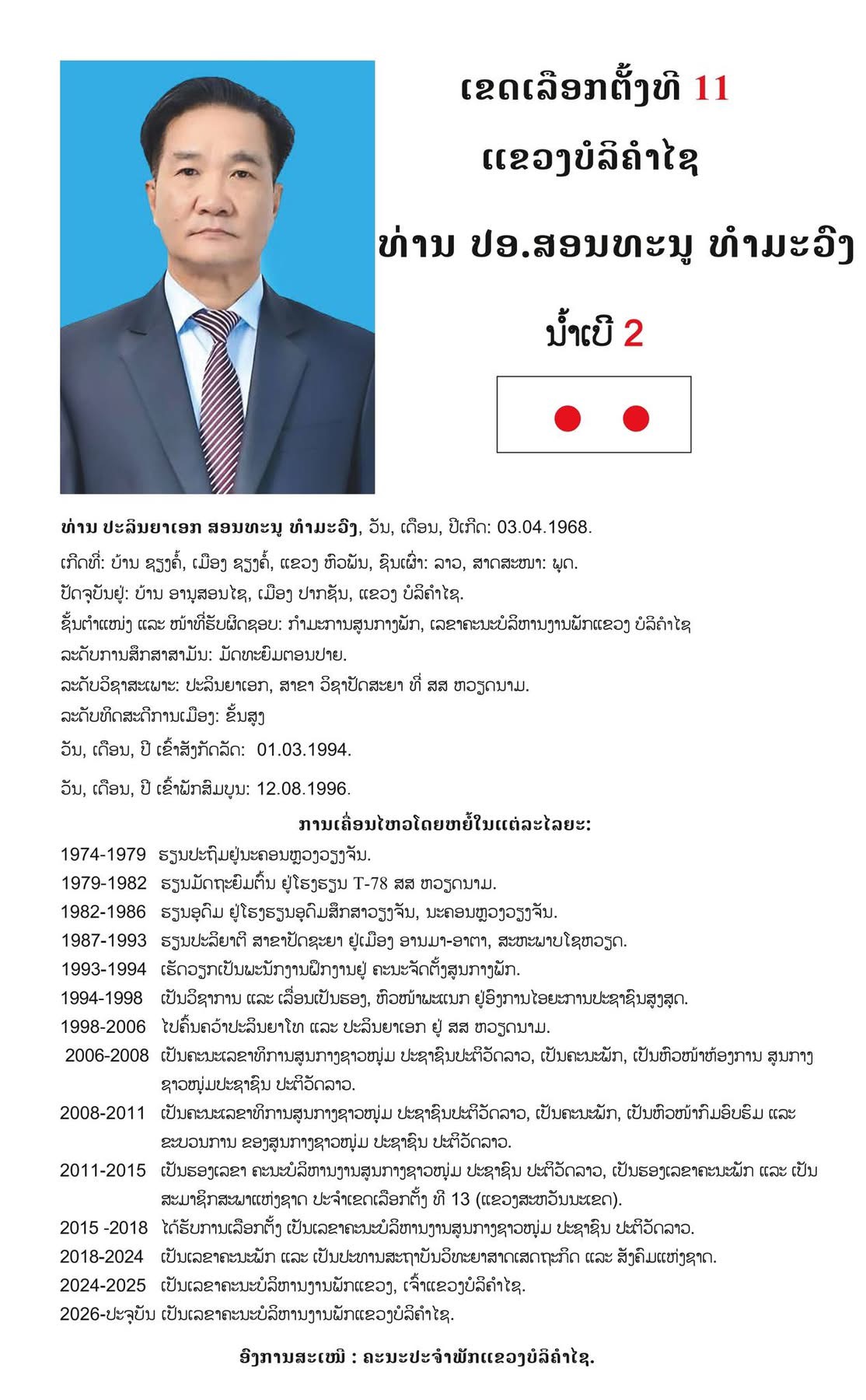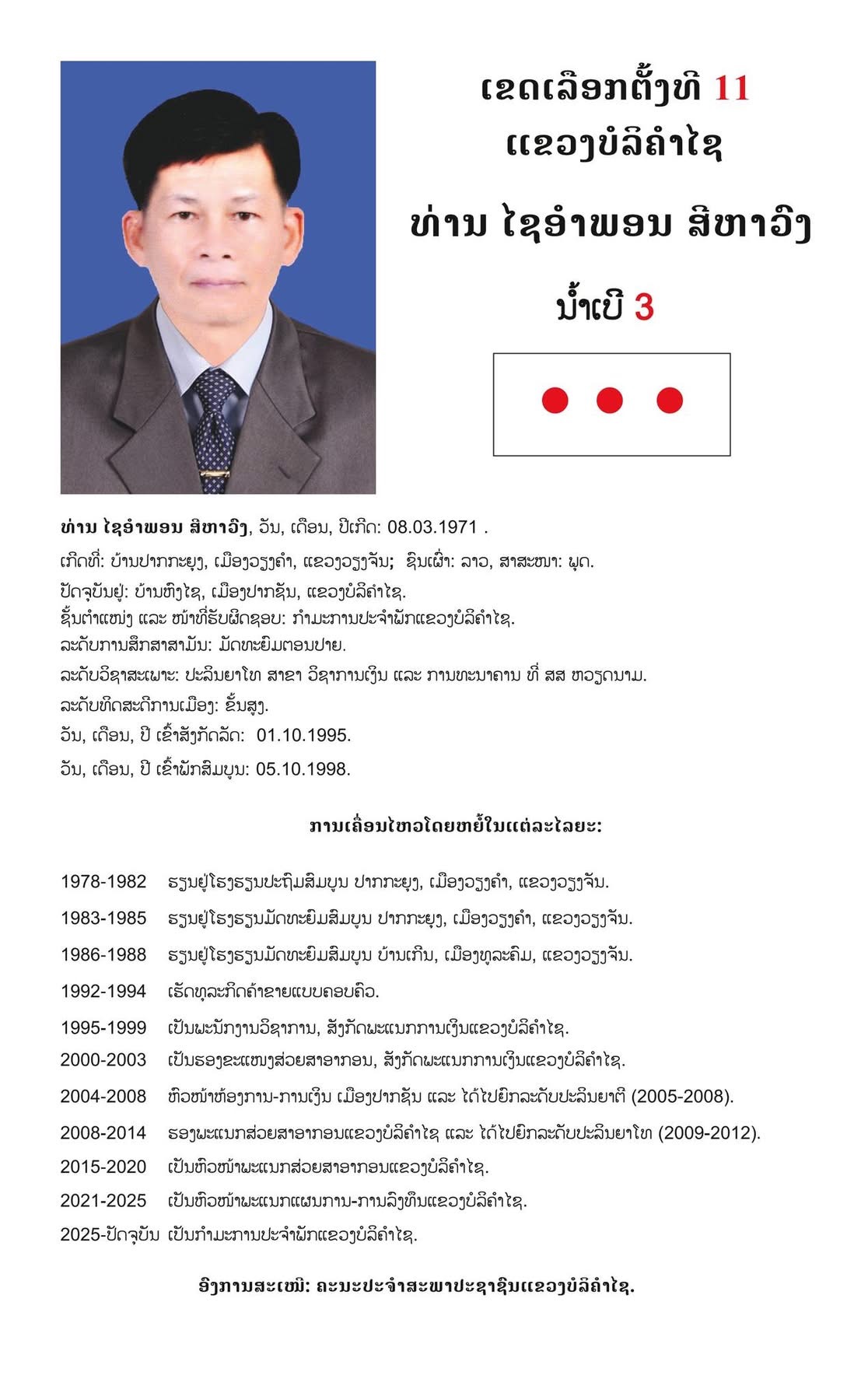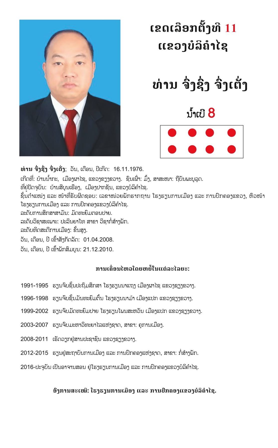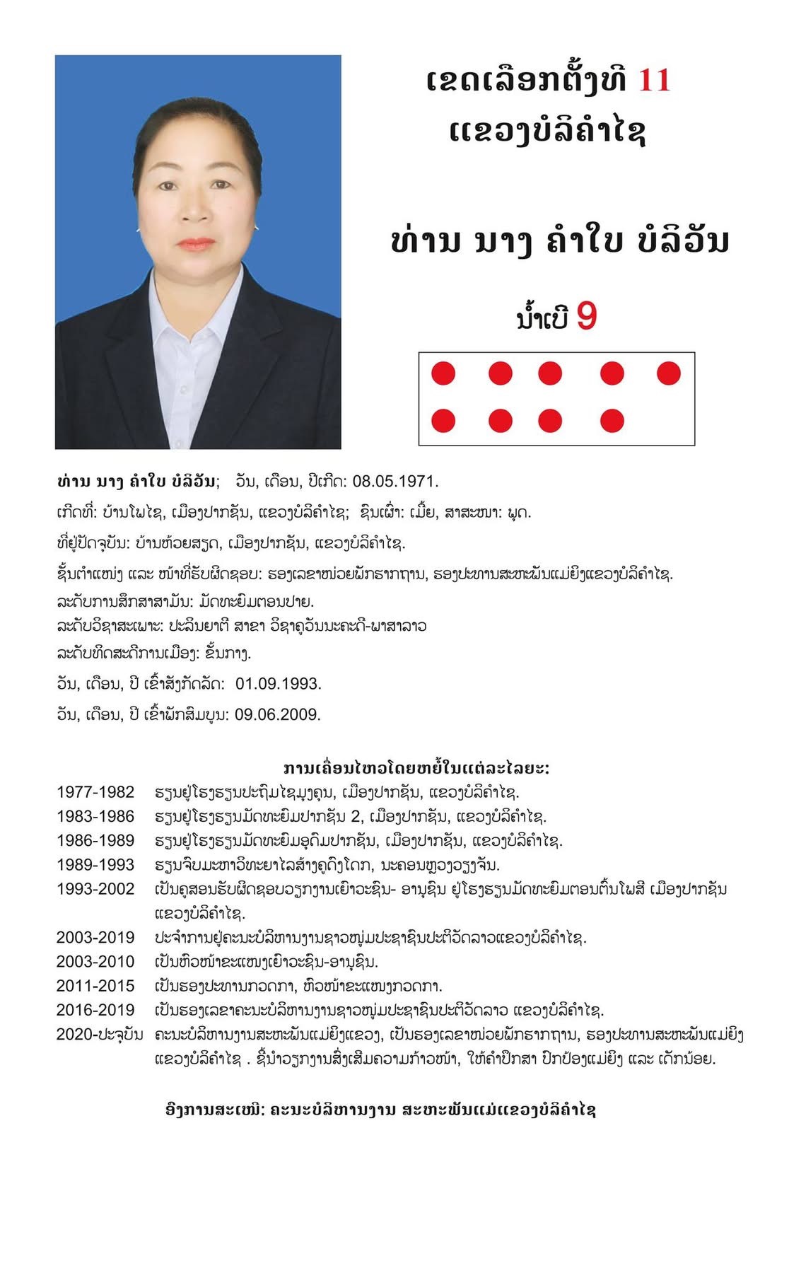 #ເຂດເລືອກຕັ້ງທີ 11 ແຂວງບໍລິຄຳໄຊ: ມີຈຳນວນຜູ້ສະໝັກ 10 ທ່ານ,​ ເລືອກເອົາ 07 ທ່ານ.