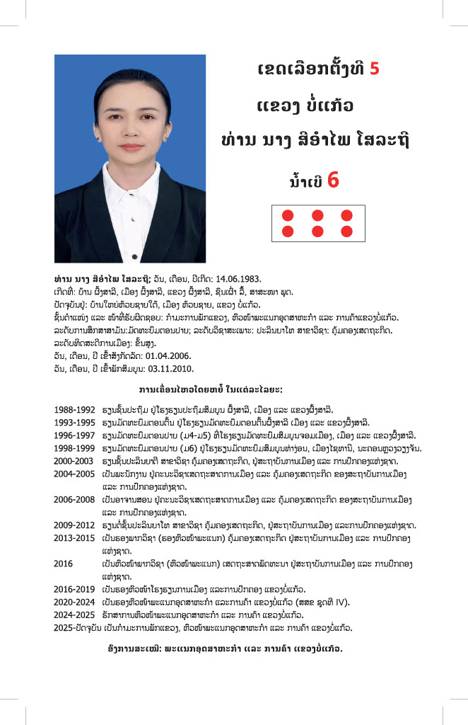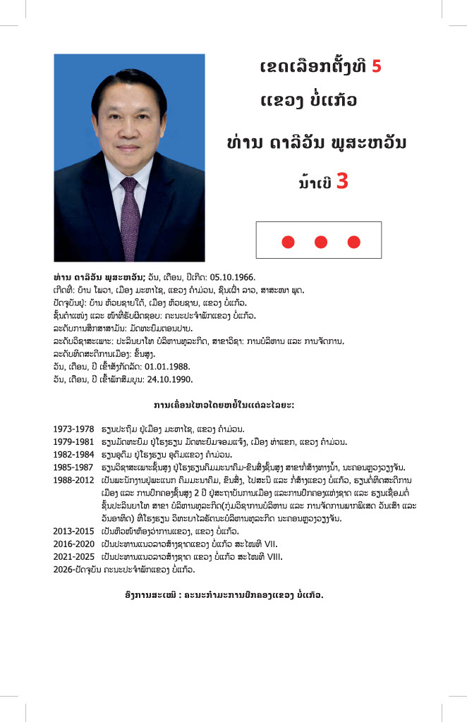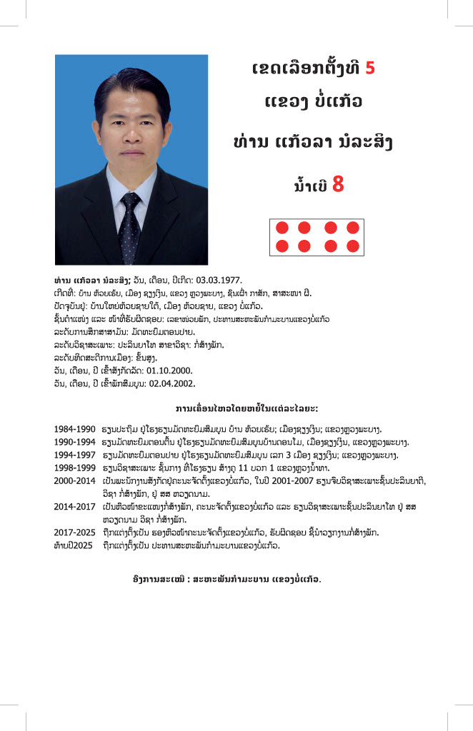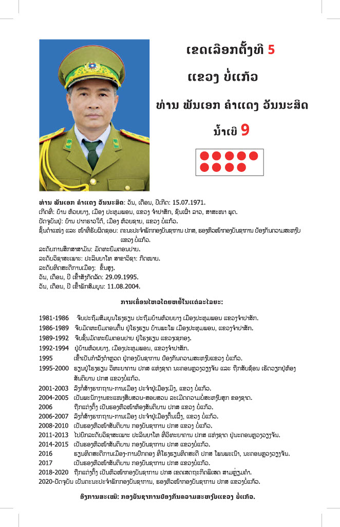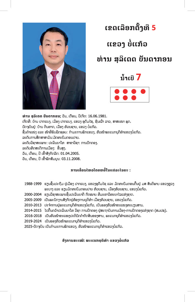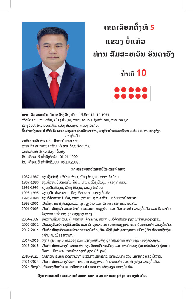 #ເຂດເລືອກຕັ້ງທີ 5 ແຂວງບໍ່ແກ້ວ: ມີຈຳນວນຜູ້ສະໝັກ 10 ທ່ານ,​ ເລືອກເອົາ 07 ທ່ານ.