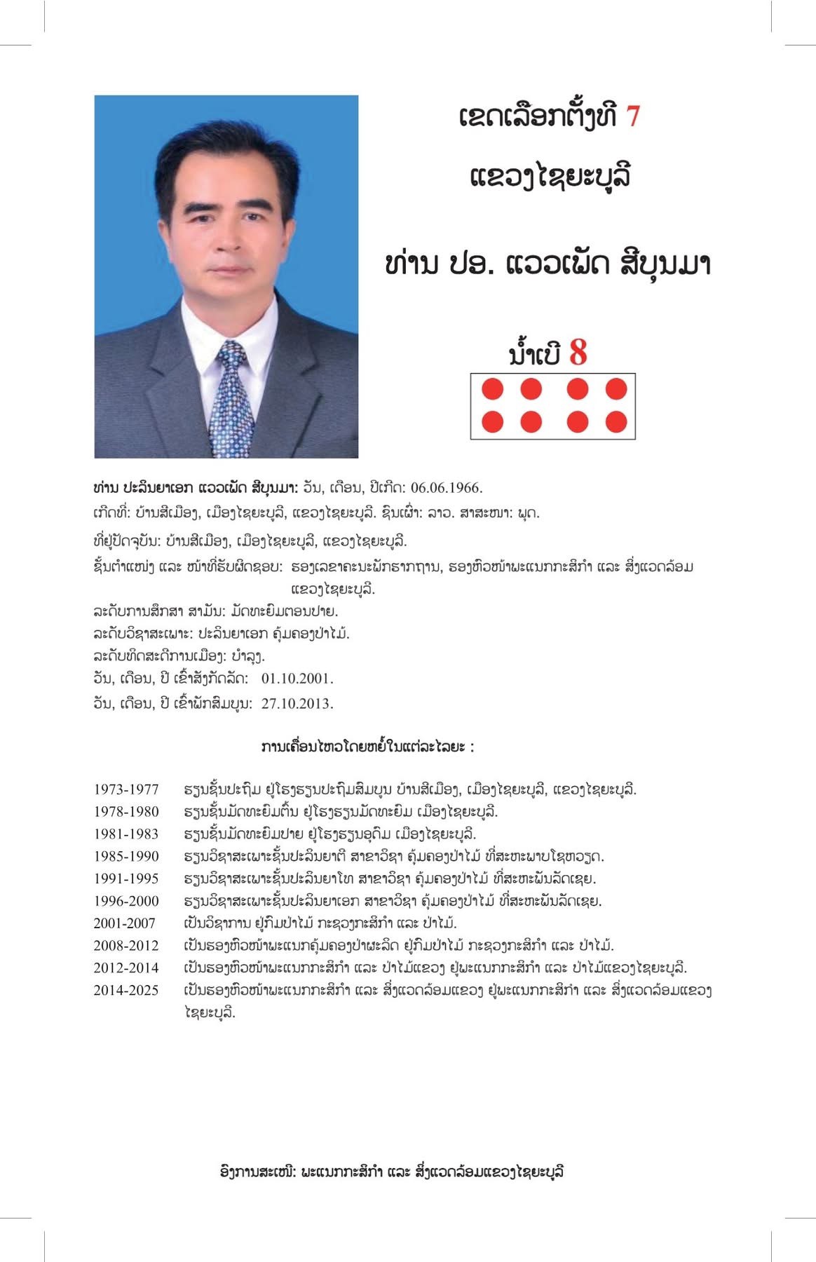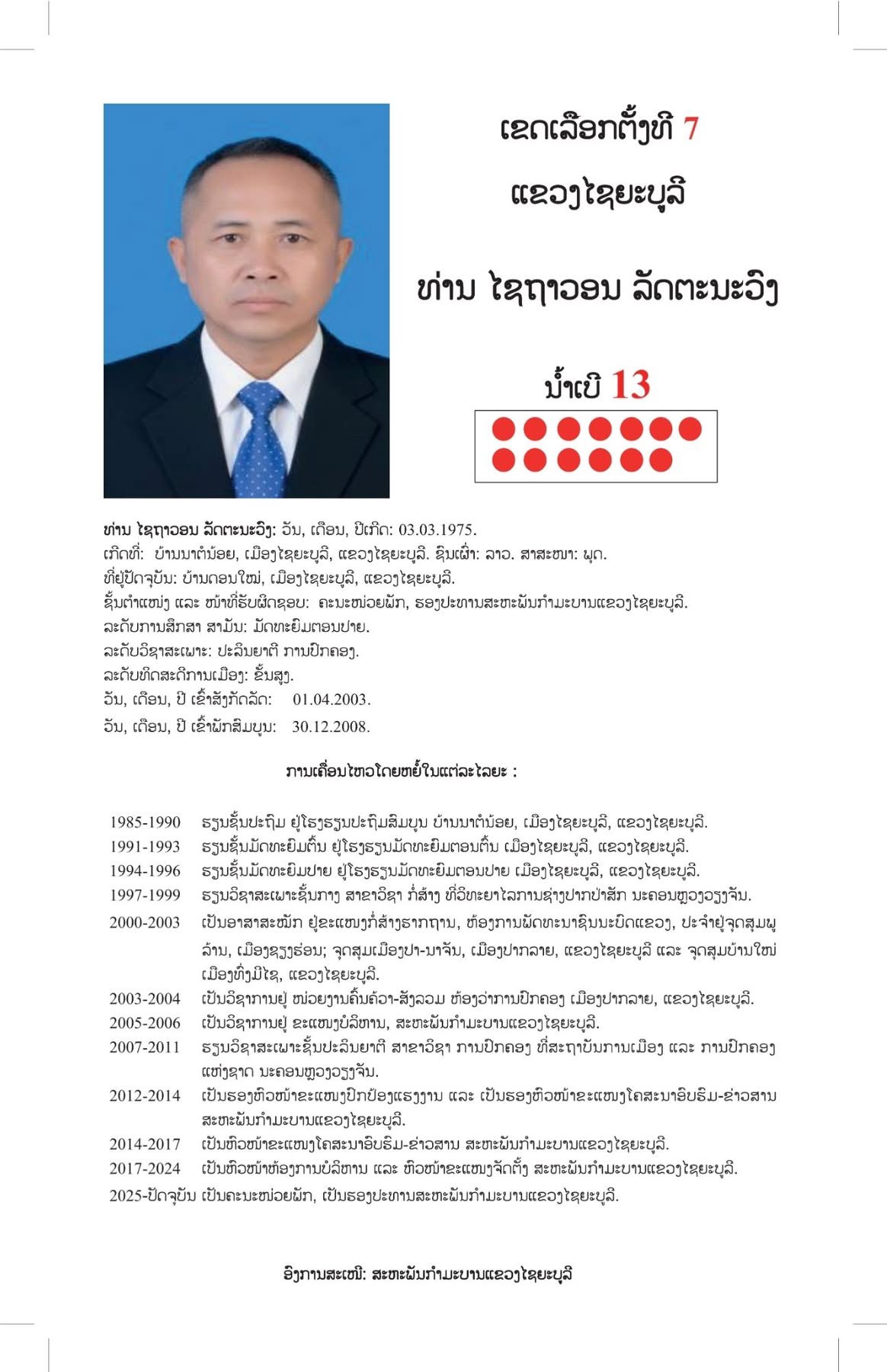 #ເຂດເລືອກຕັ້ງທີ 7 ແຂວງໄຊຍະບູລີ: ມີຈຳນວນຜູ້ສະໝັກ 13 ທ່ານ,​ ເລືອກເອົາ 09 ທ່ານ.