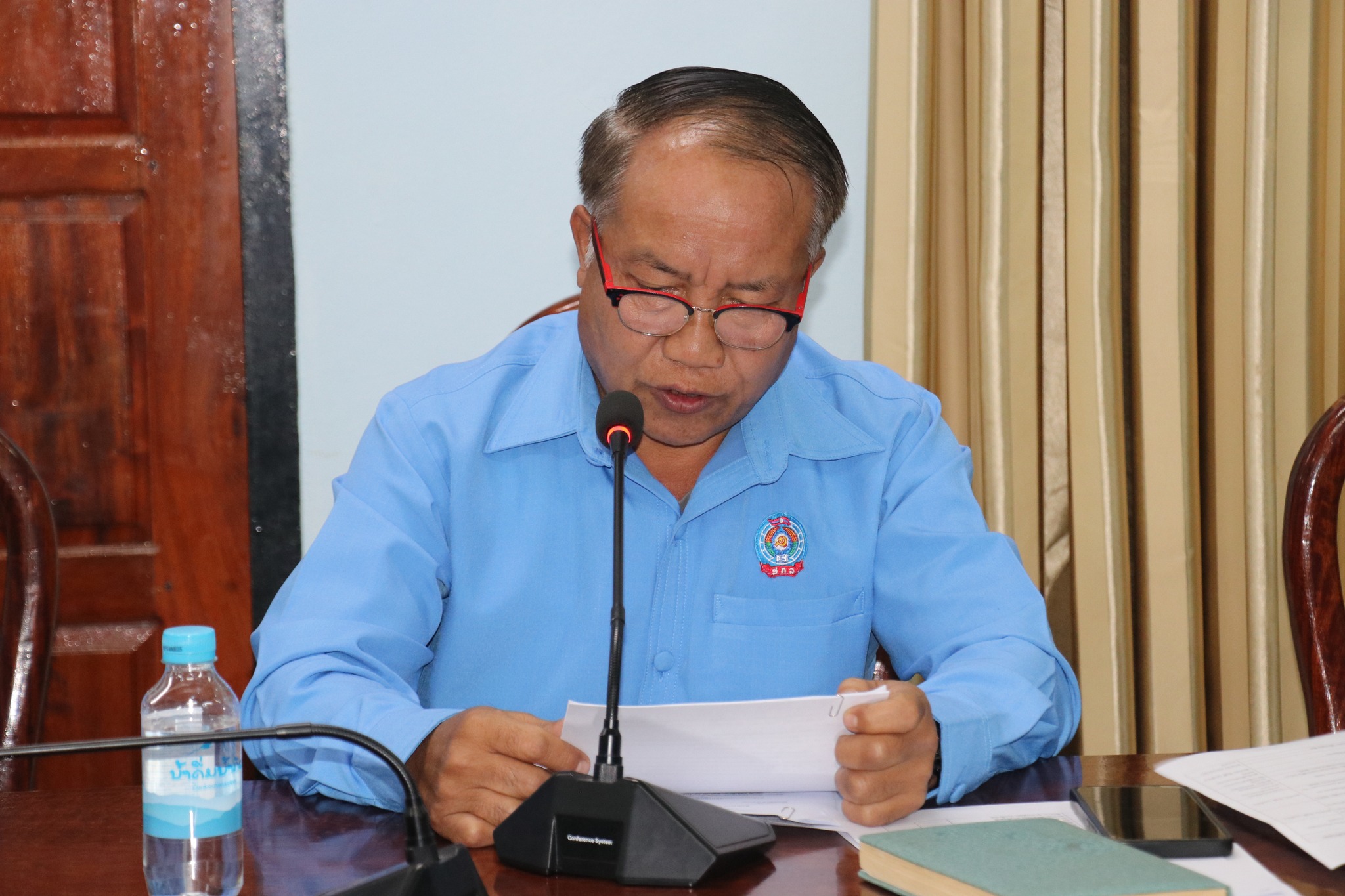 ທ້າຍພິທີ, ໄດ້ຮັບຟັງການໂອ້ລົມຈາກສະຫາຍ ບຸນຖົມ ຈິດດໍາລົງ ຮອງປະທານສະຫະພັນກໍາມະບານແຂວງ ຕື່ມອີກ.ພາບ/ຂ່າວ: ສະພາປະຊາຊົນແຂວງ.