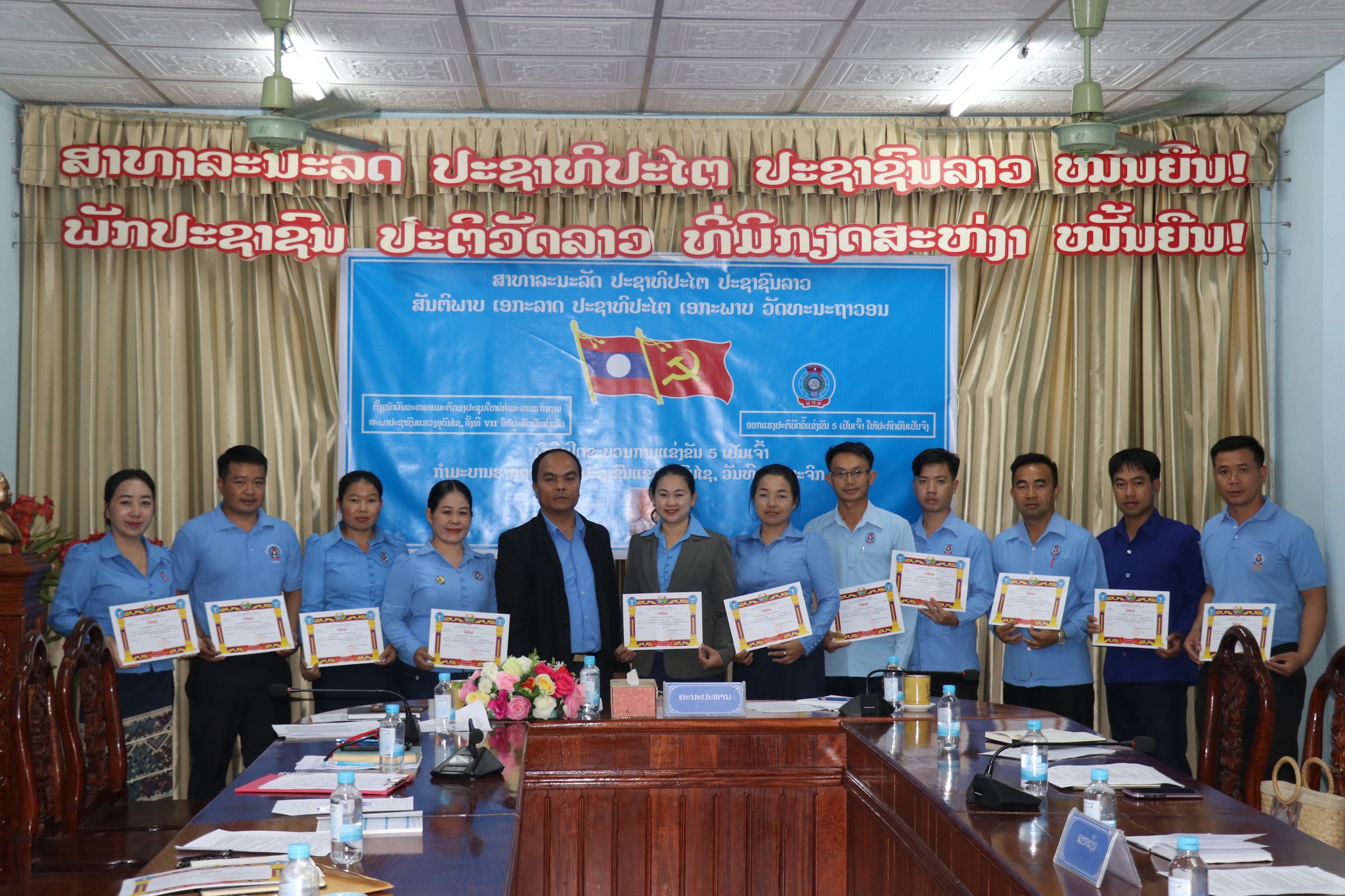 ຫຼັງຈາກນັ້ນ, ໄດ້ຜ່ານຂໍ້ຕົກລົງ ຂອງສະຫະພັນກໍາມະບານແຂວງ ວ່າດ້ວຍການຍ້ອງຍໍສະມາຊິກດີເດັ່ນ 2 ປີຊ້ອນ(2023-2024); ຜ່ານຂໍ້ຕົກລົງ ຂອງປະທານກຳມະບານຮາກຖານສະພາປະຊາຊົນແຂວງ ວ່າດ້ວຍການຊົມເຊີຍສະມາຊິກ ແລະ ຜ່ານຂໍ້ຕົກລົງ ຂອງສະຫະພັນກໍາມະບານແຂວງ ວ່າດ້ວຍການມອບໃບຢັ້ງຢືນ 5 ເປັນເຈົ້າ ປະຈຳປີ 2025 ໃຫ້ກຳມະບານຮາກຖານສະພາປະຊາຊົນແຂວງ ແລະ ໄດ້ ມອບ-ຮັບ ຢ່າງເປັນທາງການ, ພ້ອມທັງຈັບມືຮ່ວມກັນສືບຕໍ່ຈັດຕັ້ງປະຕິບັດຂໍ້ແຂ່ງຂັນ 5 ເປັນເຈົ້າ ໃນປີ 2026.