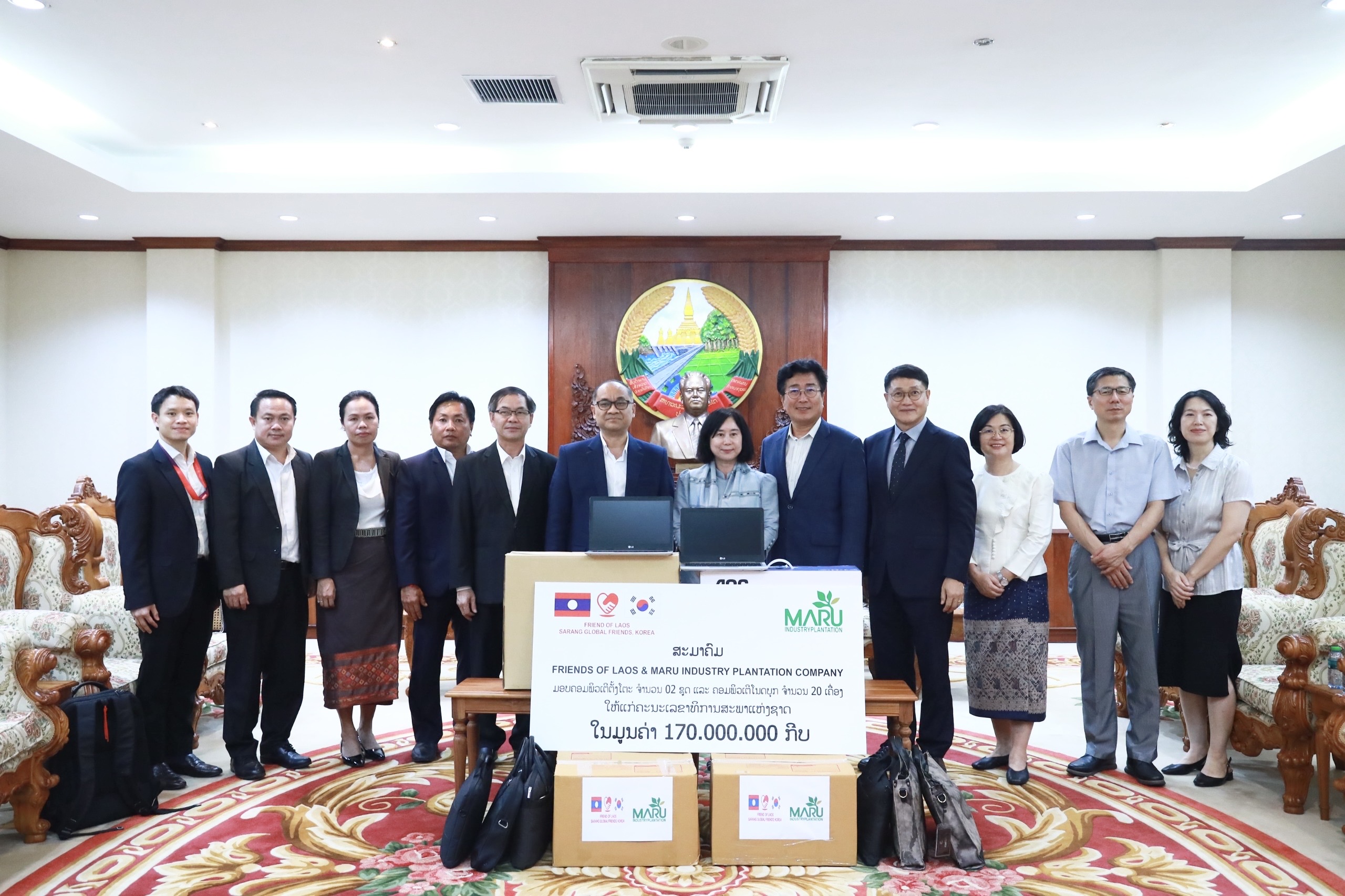 (ສພຊ) – ຕອນບ່າຍວັນຈັນທີ 6 ຕຸລາຜ່ານມາ ທີ່ສະພາແຫ່ງຊາດ (ສພຊ) ໄດ້ມີພິທີມອບ-ຮັບຄອມພິວເຕີຕັ້ງໂຕະ 2 ໜ່ວຍ ແລະ ຄອມພິວເຕີຕັ້ງຕັກ 20 ໜ່ວຍ ລວມມູນຄ່າ 170 ລ້ານກີບ ຈາກສະມາຄົມ FRIENDS OF LAOS ປະຈໍາລາວ ແລະ ບໍລິສັດ ມາຣູ ອຸດສາຫະກໍາປູກໄມ້ ຈໍາກັດຜູ້ດຽວ, ຕາງໜ້າກ່າວມອບໂດຍທ່ານ Yo Woon shik ປະທານຄະນະບໍລິຫານງານສະມາຄົມ FRIENDS OF LAOS ປະຈໍາລາວ, ທ່ານ ນາງ Kim jiyoung ປະທານບໍລິສັດ ມາຣູ ອຸດສາຫະກໍາປູກໄມ້ ຈໍາກັດຜູ້ດຽວ ແລະ ຕາງໜ້າກ່າວຮັບໂດຍທ່ານ ປອ. ອາຄົມ ປຣະເສີດ ຮອງເລຂາທິການສະພາແຫ່ງຊາດ ເຊິ່ງມີພາກສ່ວນທີ່ກ່ຽວຂ້ອງເຂົ້າຮ່ວມເປັນສັກຂີພະຍານ; ທ່ານ ປອ. ອາຄົມ ປຣະເສີດ ໄດ້ກ່າວສະແດງຄວາມຂອບໃຈ ແລະ ມອບໃບຍ້ອງຍໍຂອງຄະນະປະຈໍາສະພາແຫ່ງຊາດ ເພື່ອຍ້ອງຍໍຜົນງານດີເດັ່ນໃນການປະກອບສ່ວນຊຸກຍູ້ ແລະ ອຸປະຖຳຄັ້ງນີ້.